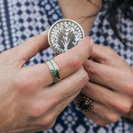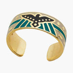 Wear this Raven Ring and embody the free-spirited nature of the Southwest. This ring features gold detailing, a black raven and turquoise-colored epoxy.