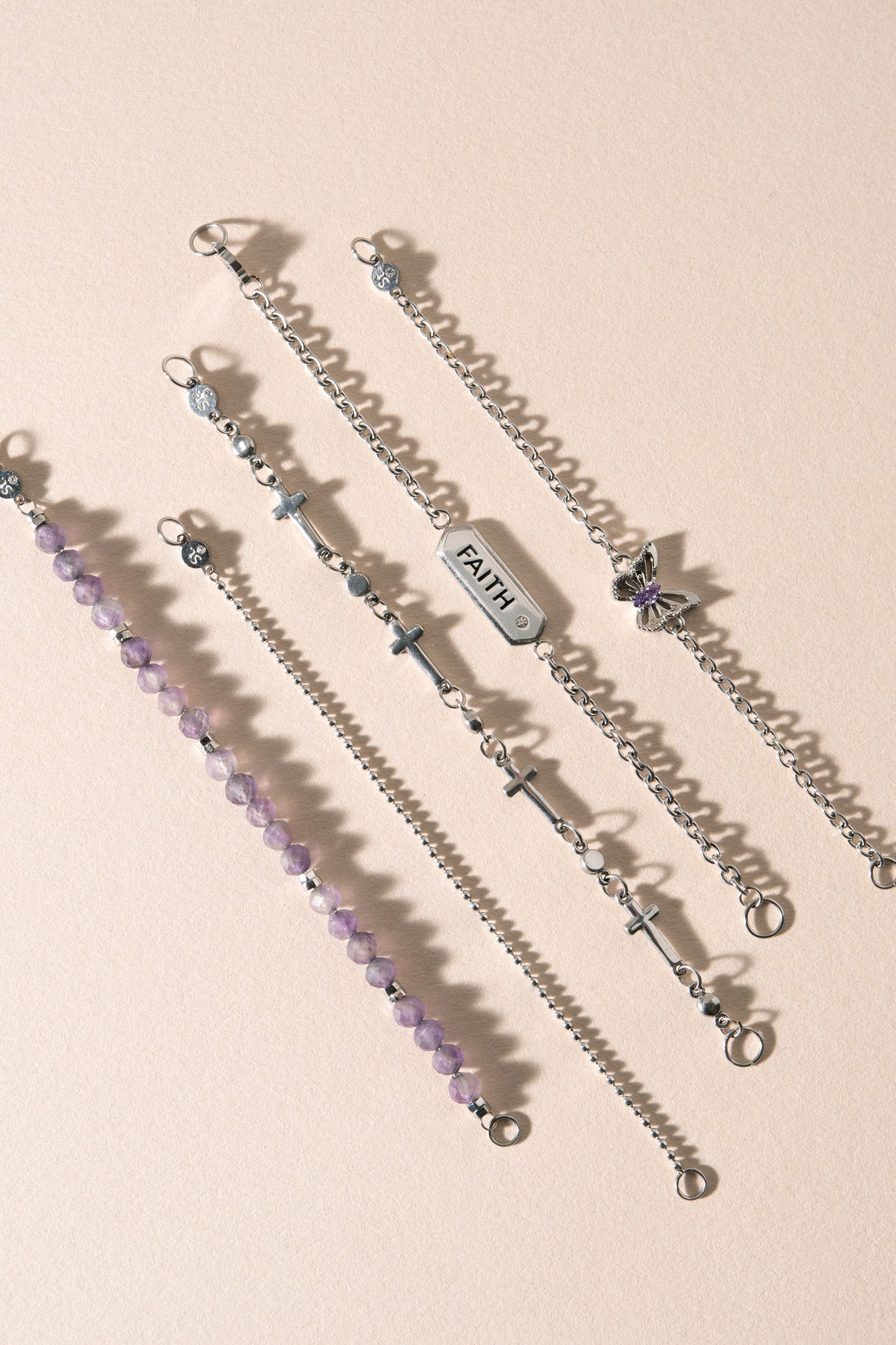 - Butterfly stranded set, purple chain fits 4.5” - 9” wrists