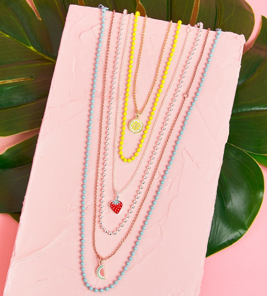 Add in some fun, flirty symbols from the Zest for Life Collection to add some seasonal whimsy. It is summer after all. If you’re feeling sweet, add a Strawberry Charm Necklace or a Watermelon Charm Necklace. If you’re feeling a little more sour, add the Lemon.