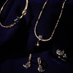 A sleek black cat perches gracefully over a golden crescent moon on this elegant open ring. The delicate silhouette balances whimsy and sophistication, wrapping gently around the finger to bring a touch of nighttime magic to your everyday look. Perfect for stacking or wearing solo, it’s a subtle nod to those who find beauty in the stars.
