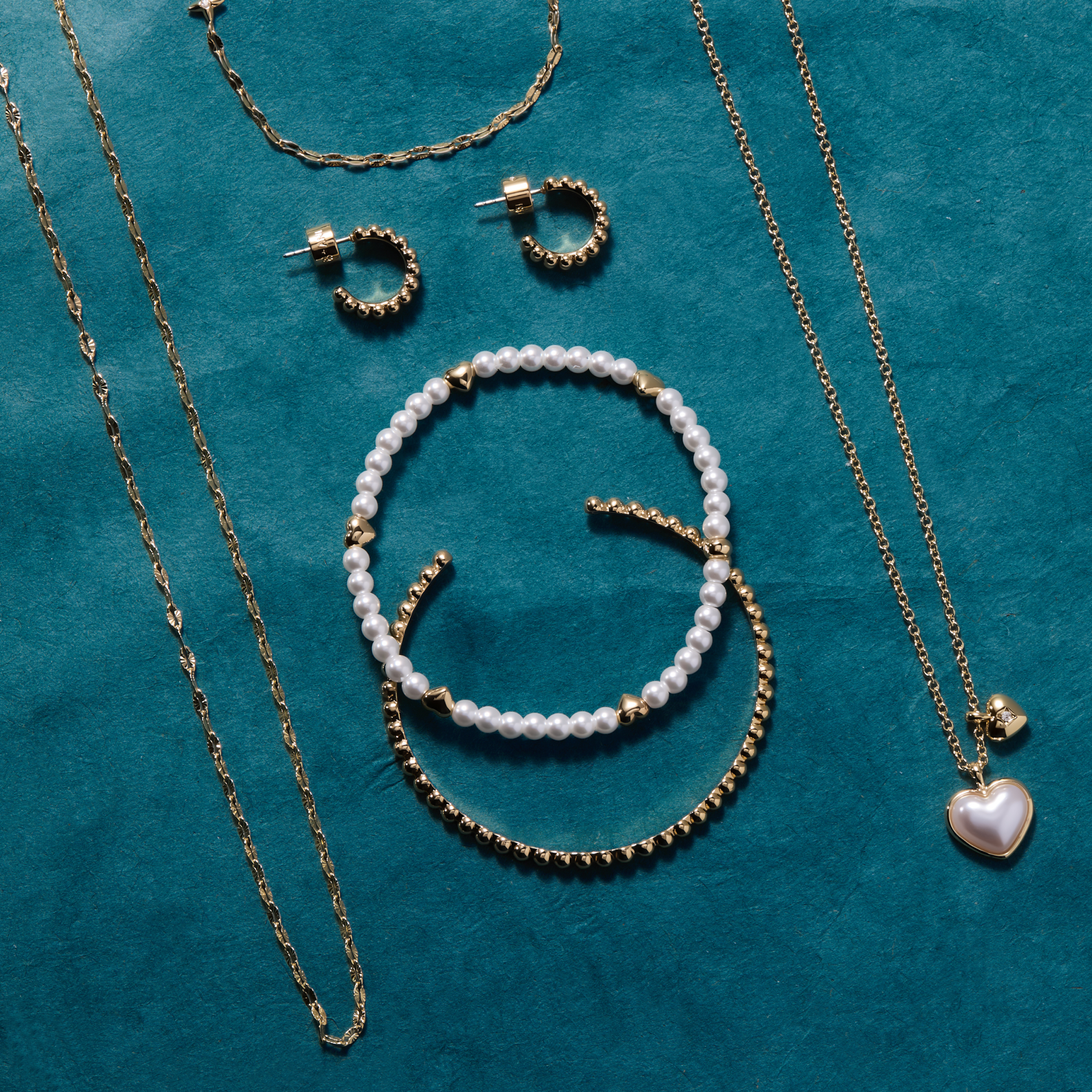 - Pearl Heart Duo Charm Necklace and Heart and Pearl Stretch Bracelet