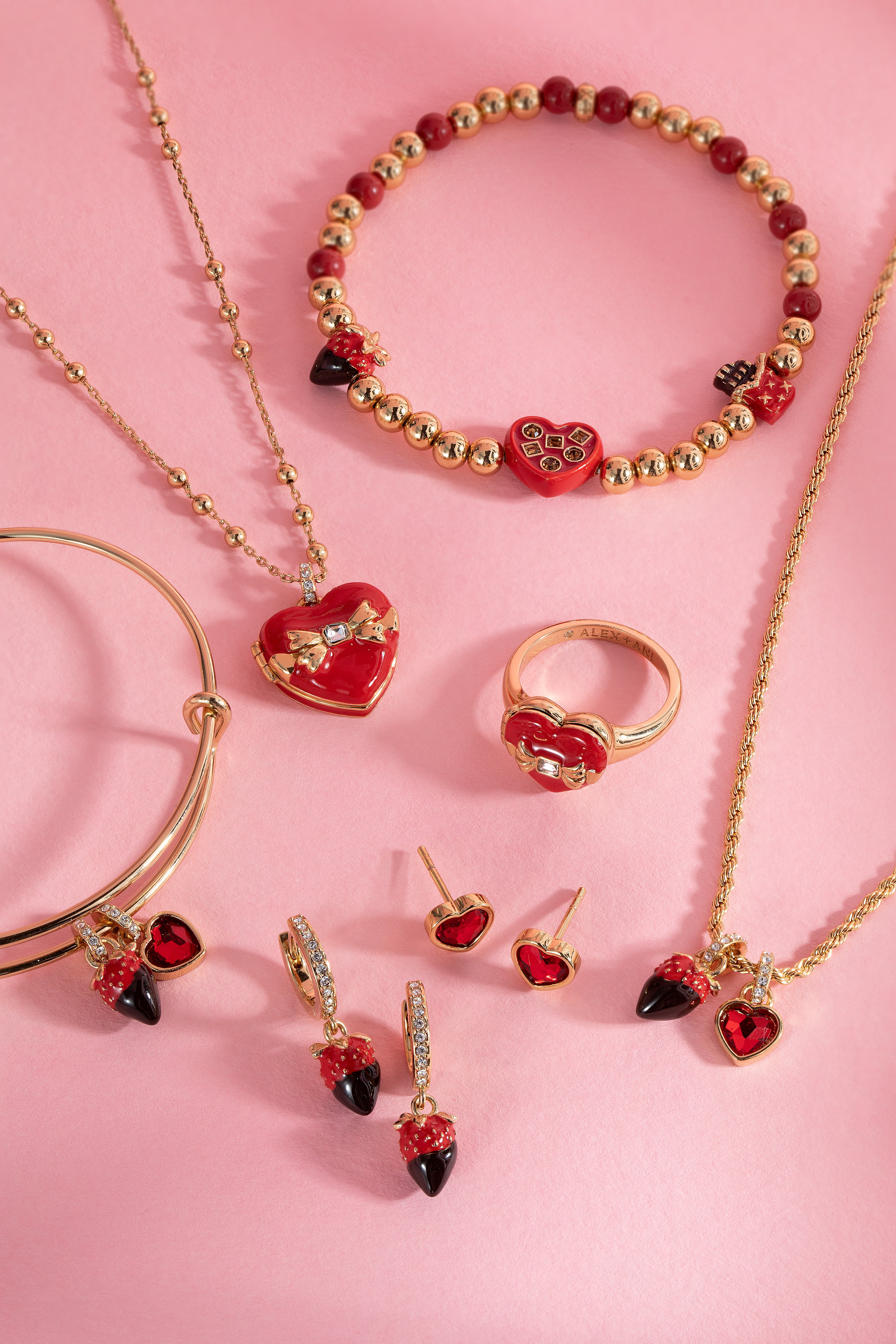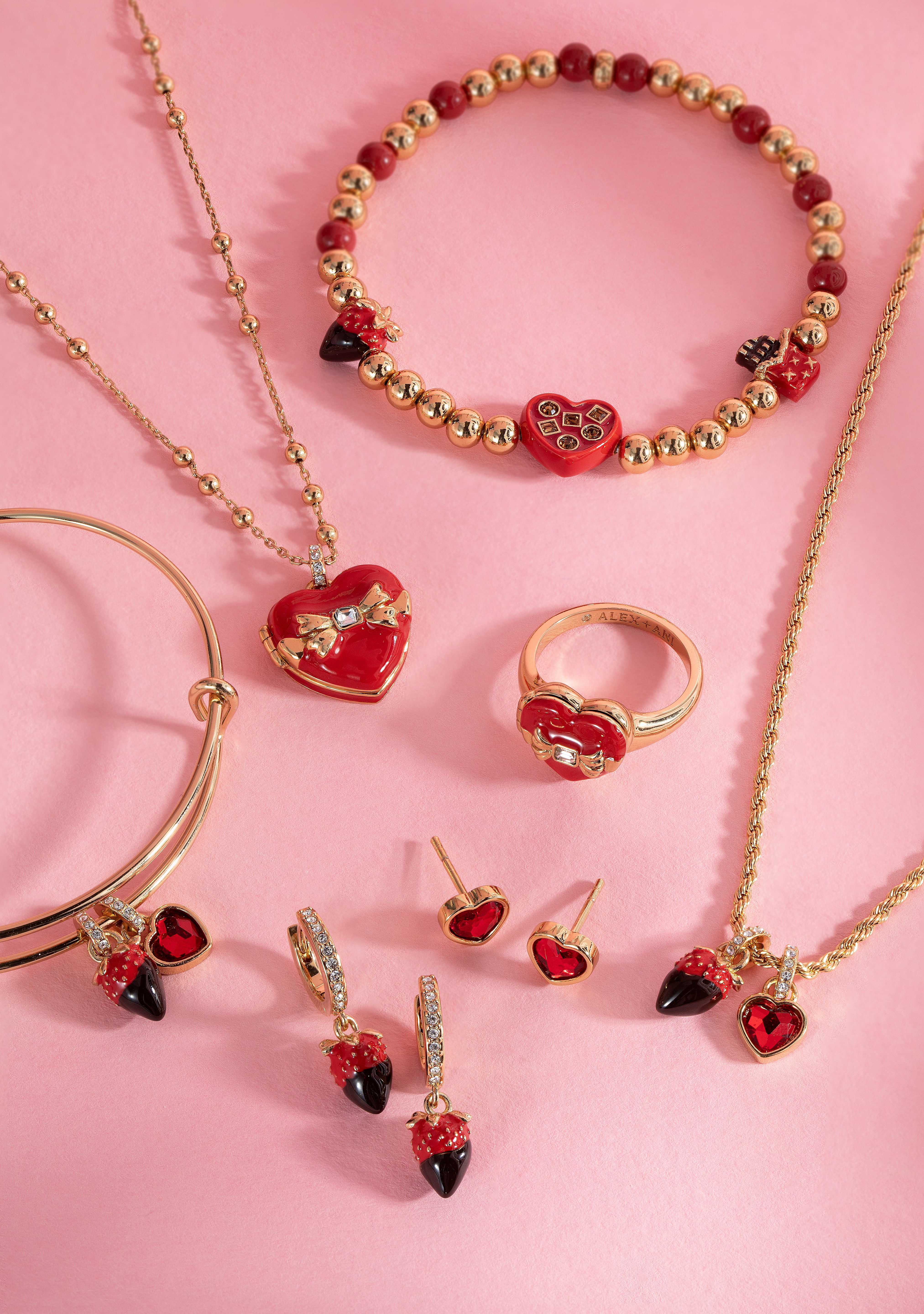 If chocolate is your love language, wear it out loud with this Chocolate-Covered Strawberry Duo Charm Bangle, which features two charms on an expandable wire bangle: a chocolate-covered strawberry, and an open box of Valentine’s Day chocolates embellished with crystals. Wear it for a little bit of sweetness, or gift it to someone who has your heart.