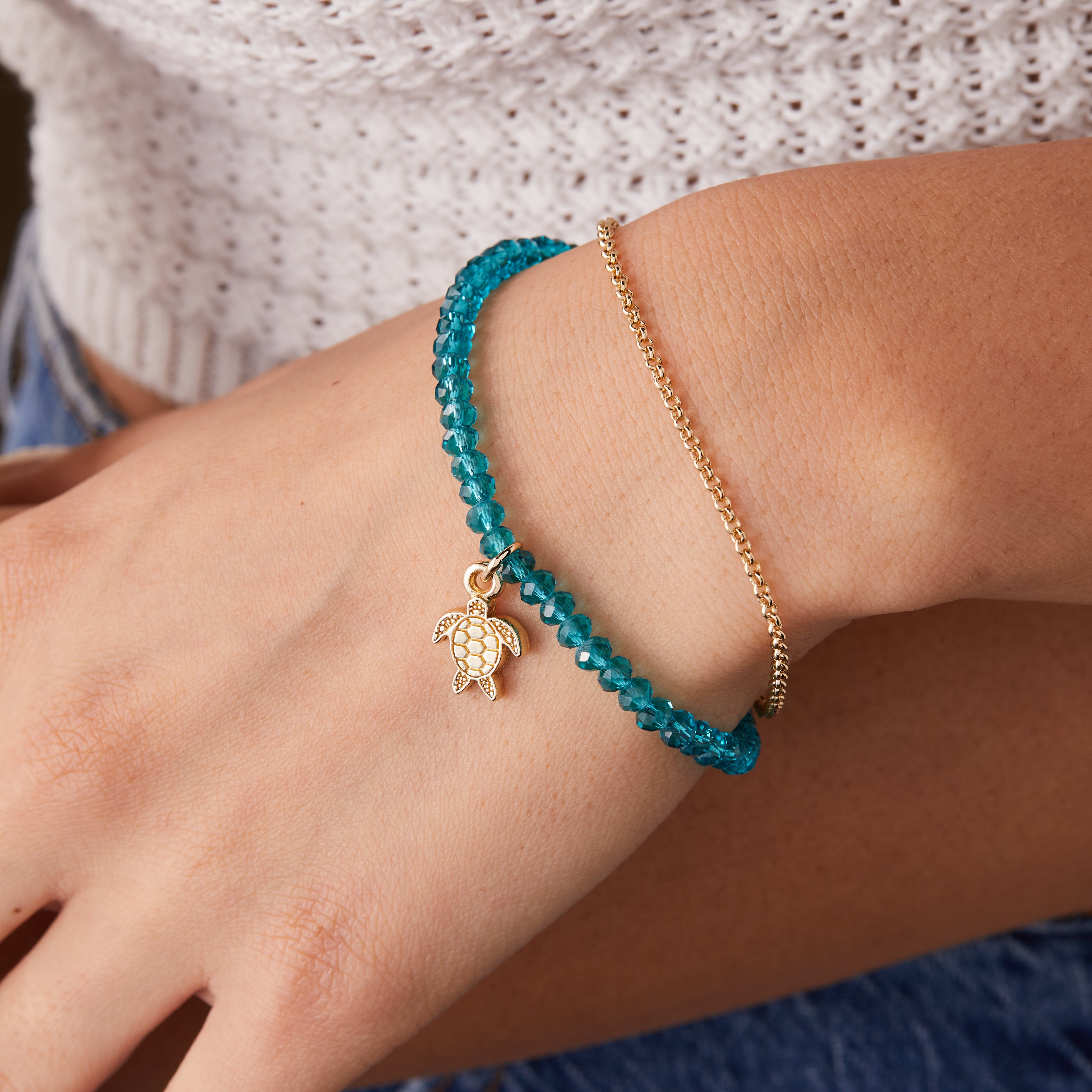 Sea Turtle Bead and Chain Bracelet