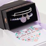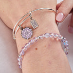 'Mum in a Million' Purple Flower Duo Charm Bangle, Set of 2