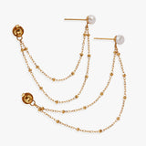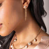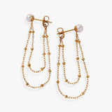 Add a luminous touch to any look with these Freshwater Pearl Front-and-Back Earrings. They feature genuine freshwater pearls on post earrings, with delicate layered chains that hang down from the pearl, go around the ear lobe, and attach to the back of the post. Wear them for an unmatched glow.