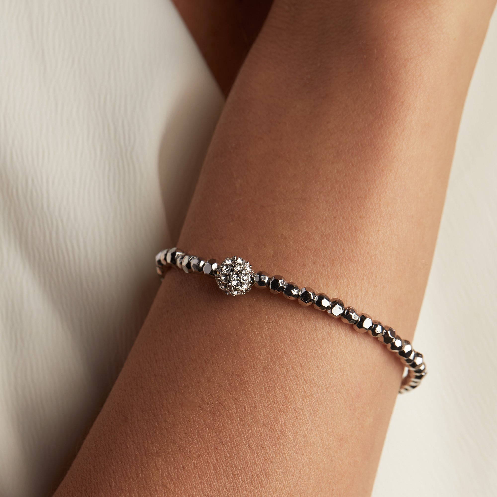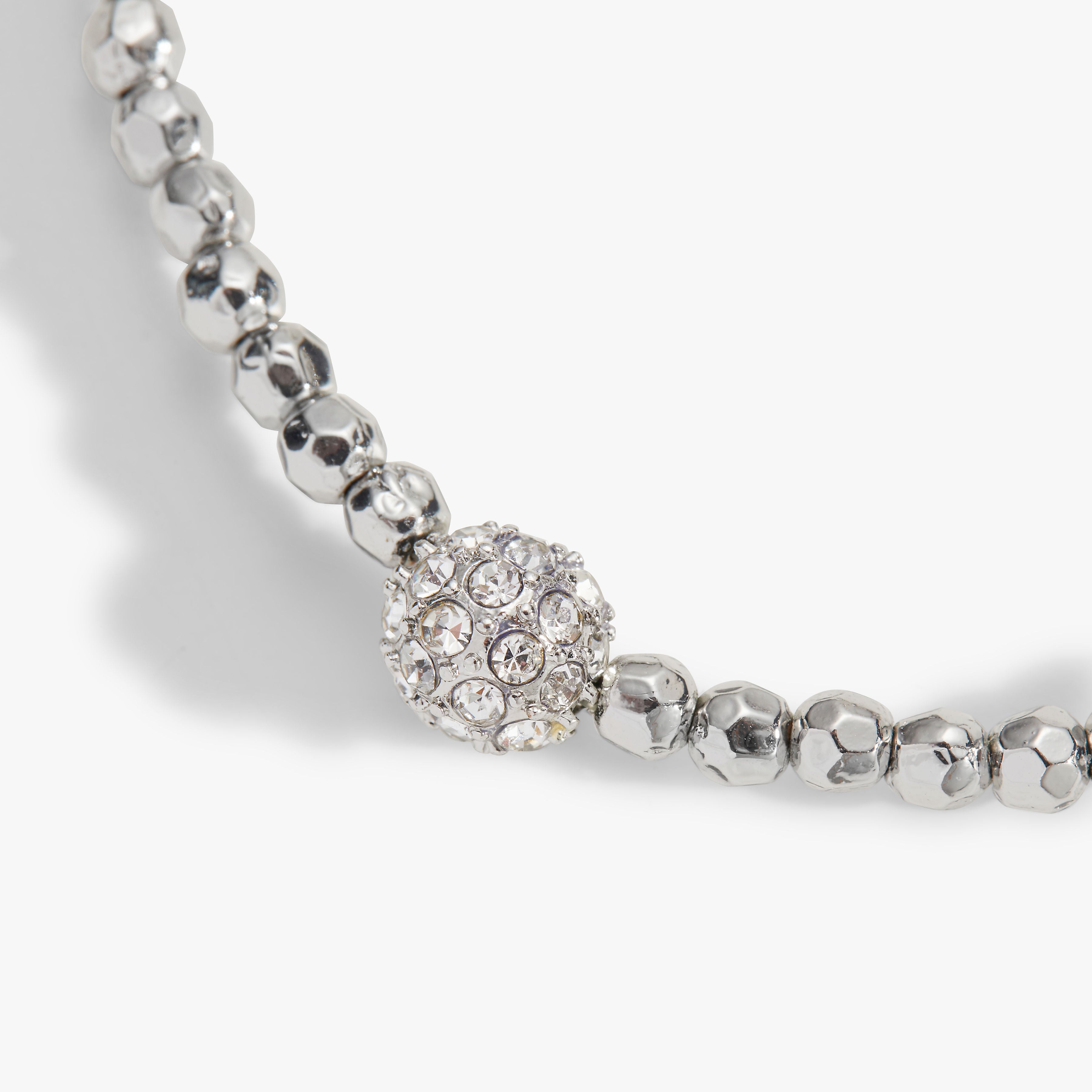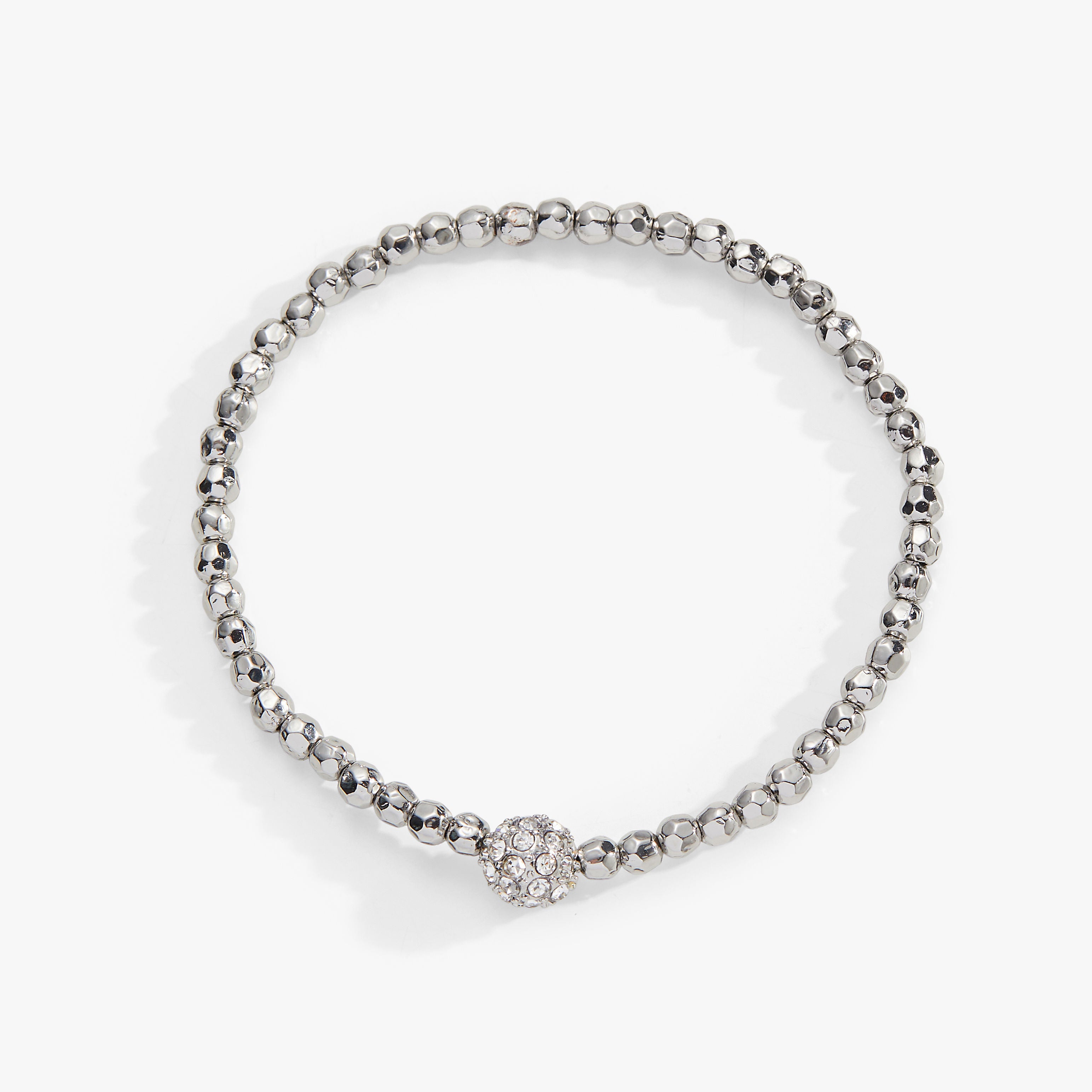 Perfect for everyday wear and special occasions, this beaded bracelet features silver beads encircling a silver-tone sphere with pavé crystal detailing. Make every day a special occasion when you layer on this tranquil beauty.