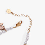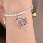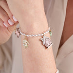 Celebrate the holiday season with this charming pink Christmas beaded bracelet. The pearl chain sets a delicate foundation for a merry collection of enamel charms, including a whimsical gingerbread woman, festive mistletoe, a cozy gingerbread house accented with sparkling stones, a glittering ornament, and a playful stocking. Each detail captures the spirit of the holidays, adding a touch of joy and sparkle to your festive outfits. Perfect for gifting or treating yourself, this bracelet brings a cheerful and playful vibe to any celebration.