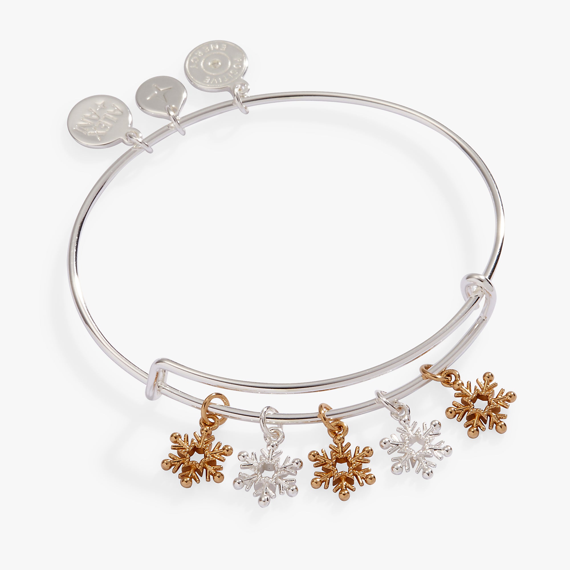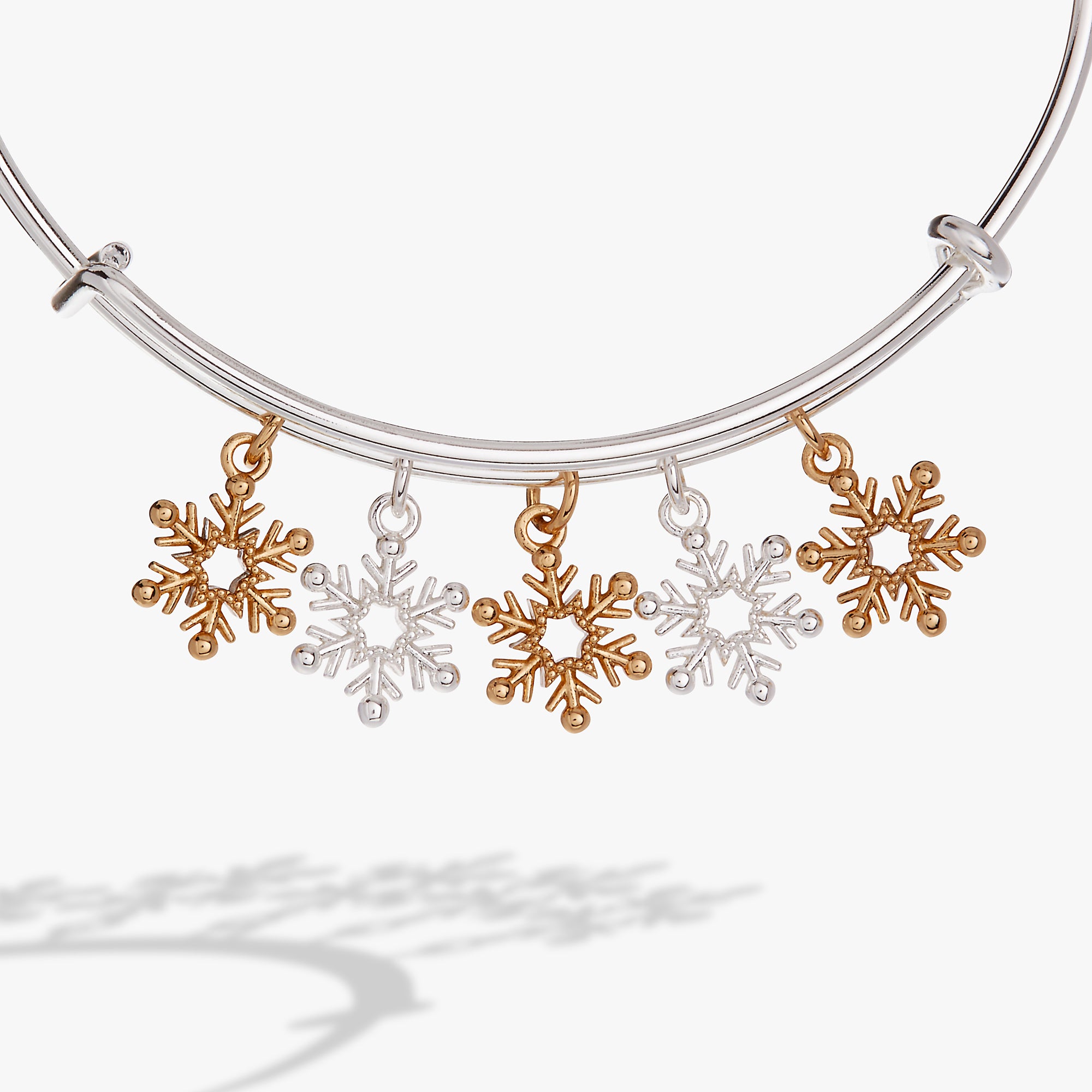 'Tis the season for holiday sparkle. This Snowflake Multicharm Bangle features five cutout dimensional snowflake charms in varying metal finishes, all hanging from an expandable wire bangle bracelet. Stack it with other symbols of the holidays and sparkling accent bracelets for a truly festive look.
