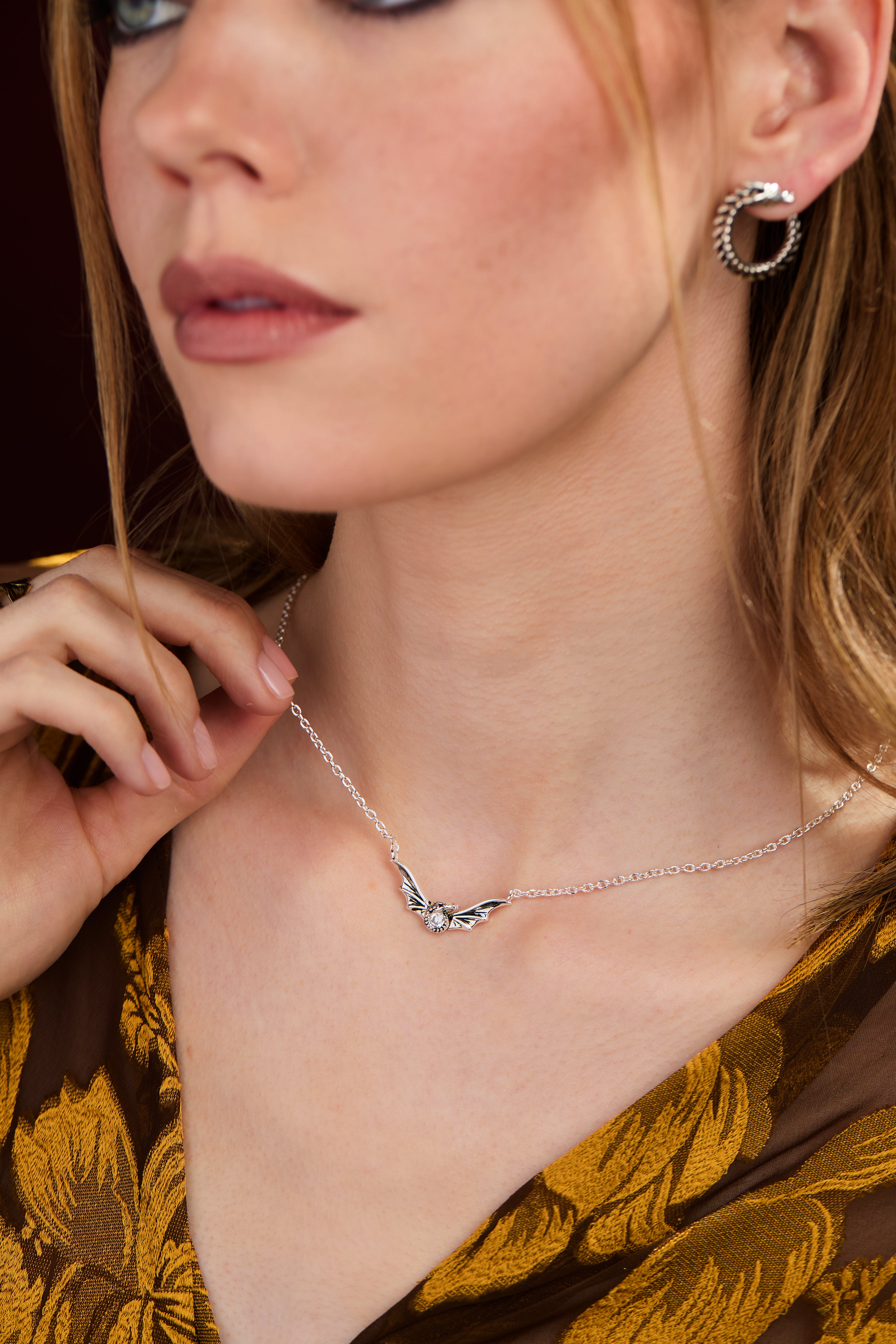 Inspired by Syrax—the dragon ridden by Rhaenyra Targaryen—these textured hoop earrings bring fire and flight to your everyday stack. Crafted with a dimensional dragon head and detailed with scaled ridges, soft spines, and a curved tail that wraps behind the ear, each piece channels the strength and beauty of a creature born to rule the skies. Bold yet wearable, this fierce design is perfect for anyone ready to claim their power. House of the Dragon™ x Alex and Ani collab.