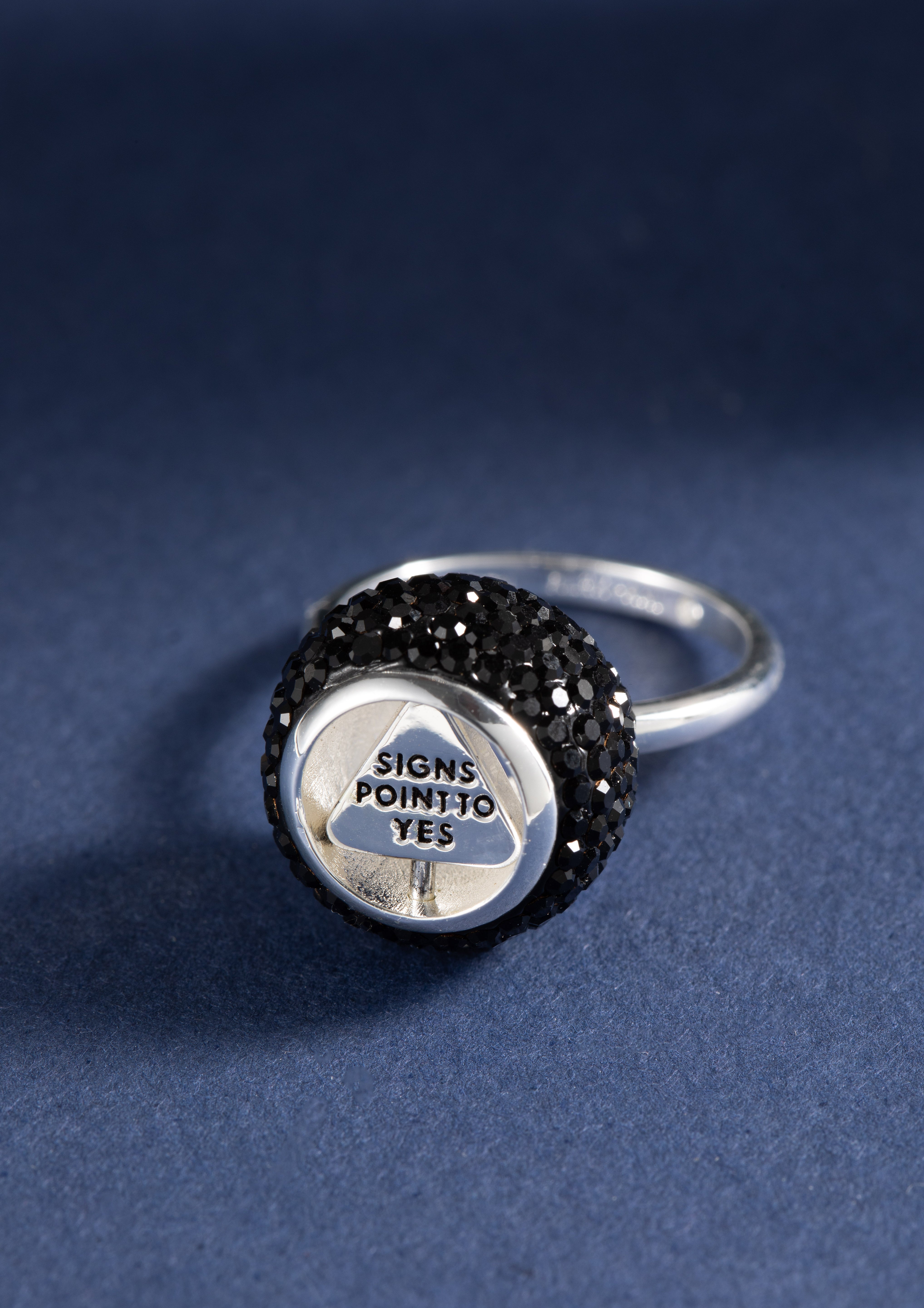 The Magic 8 Ball™ x Alex and Ani collab brings a nostalgic icon to your ring stack. This ring features jet crystal pave beads and a double-sided triangle slider engraved with cheeky messages like “Don't Count On It” and “Signs Point to Yes.”. A playful way to channel your inner mystic—just without having to shake for answers.