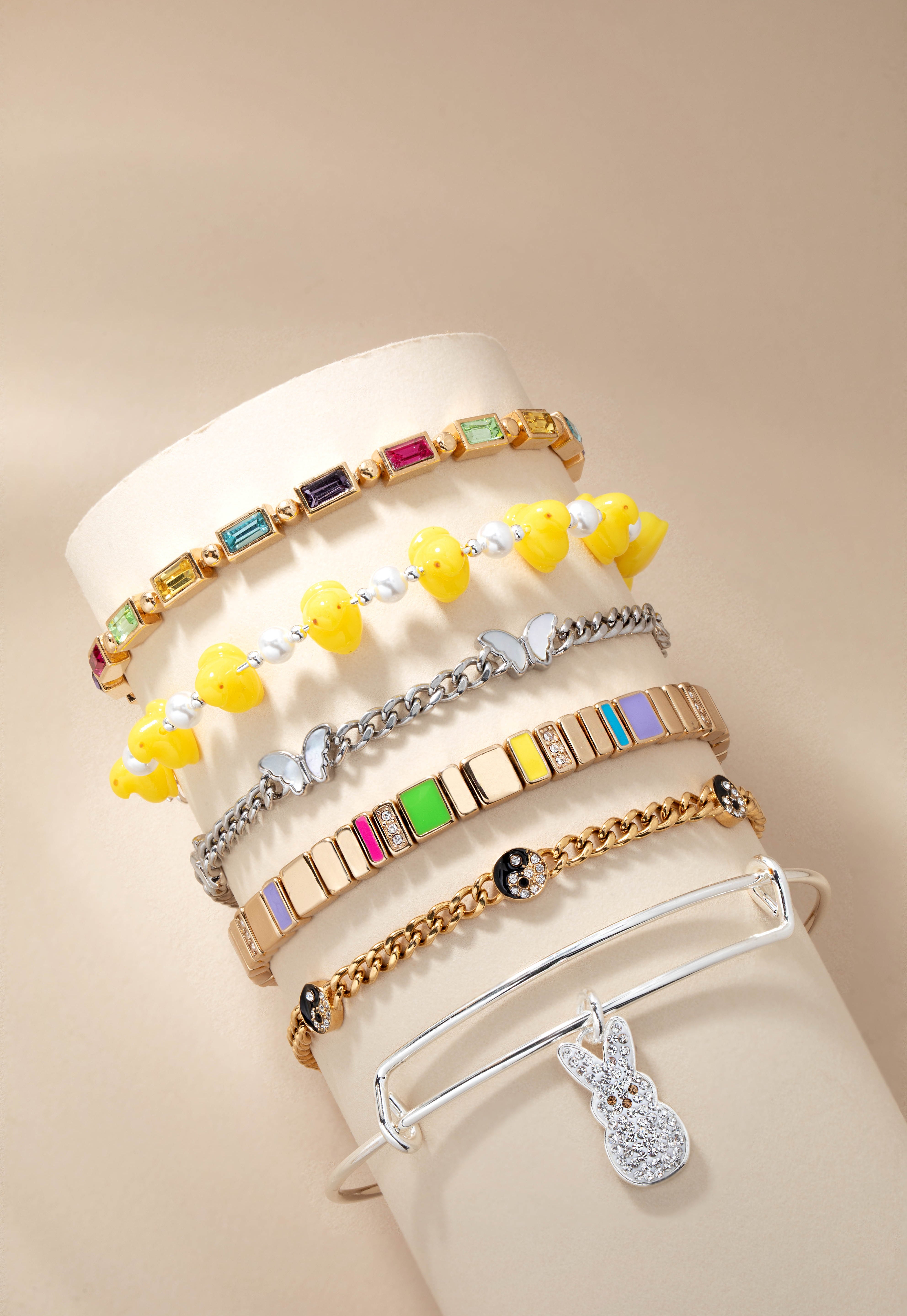 Celebrate everything sweet about springtime and Easter with this PEEPS® Crystal Bunny Bangle, which features a pavé crystal PEEPS® bunny charm on an expandable wire bangle bracelet. Wear it to welcome the season — or gift it to somebunny you love.