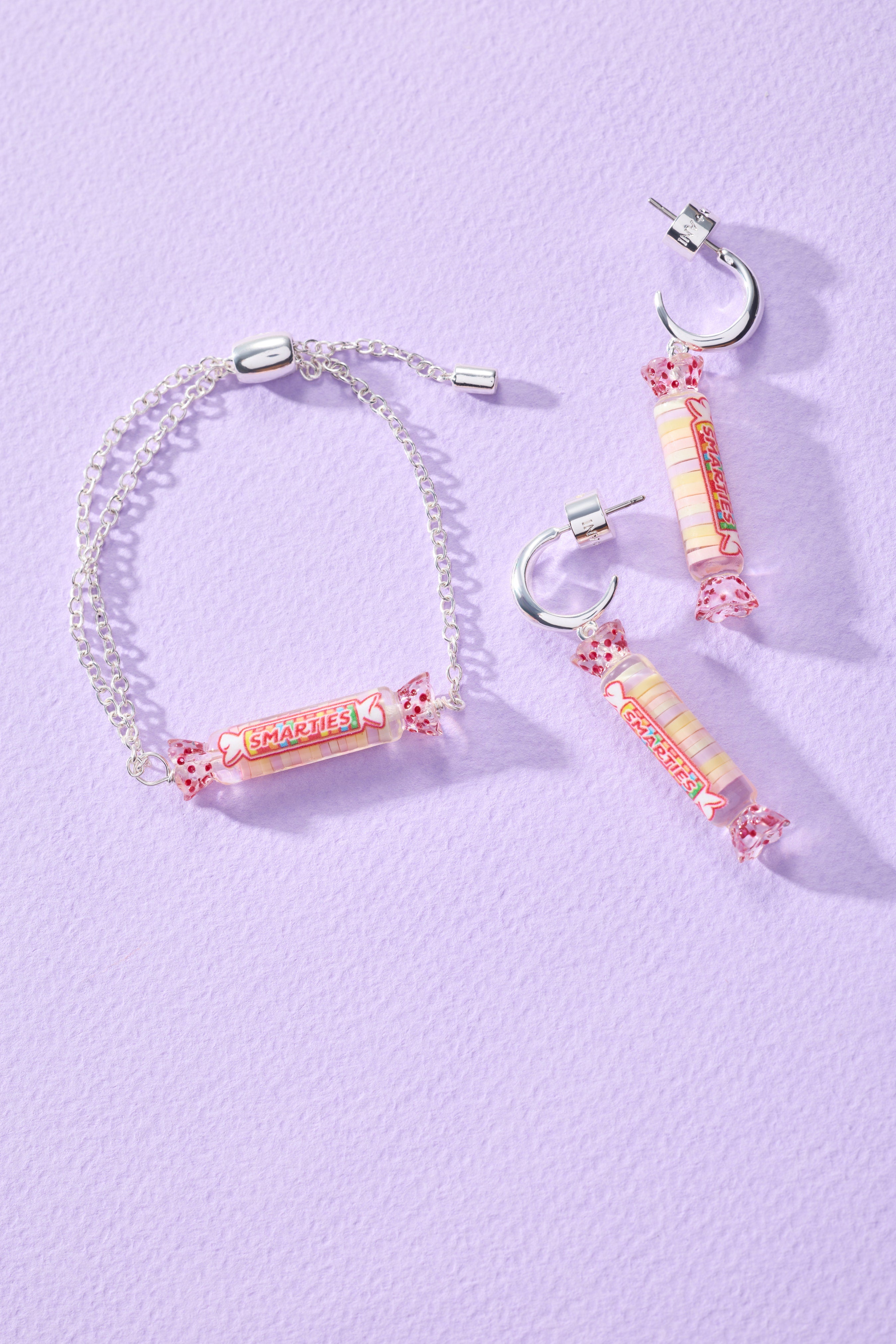 Rock this fun pull chain bracelet adorned with a detailed resin charm that captures the iconic look of a SMARTIES® candy roll in its classic wrapper. A delightful accessory for anyone who loves a pop of color and a dash of sugary nostalgia on their wrist. The adjustable pull chain design ensures a comfortable fit for all wrist sizes, while the vibrant resin charm brings instant joy and conversation-starting charm to your everyday style. Whether you're channeling '90s vibes or simply celebrating your love of colorful candies, this playful piece is the perfect way to add a touch of sweetness to your accessory collection.