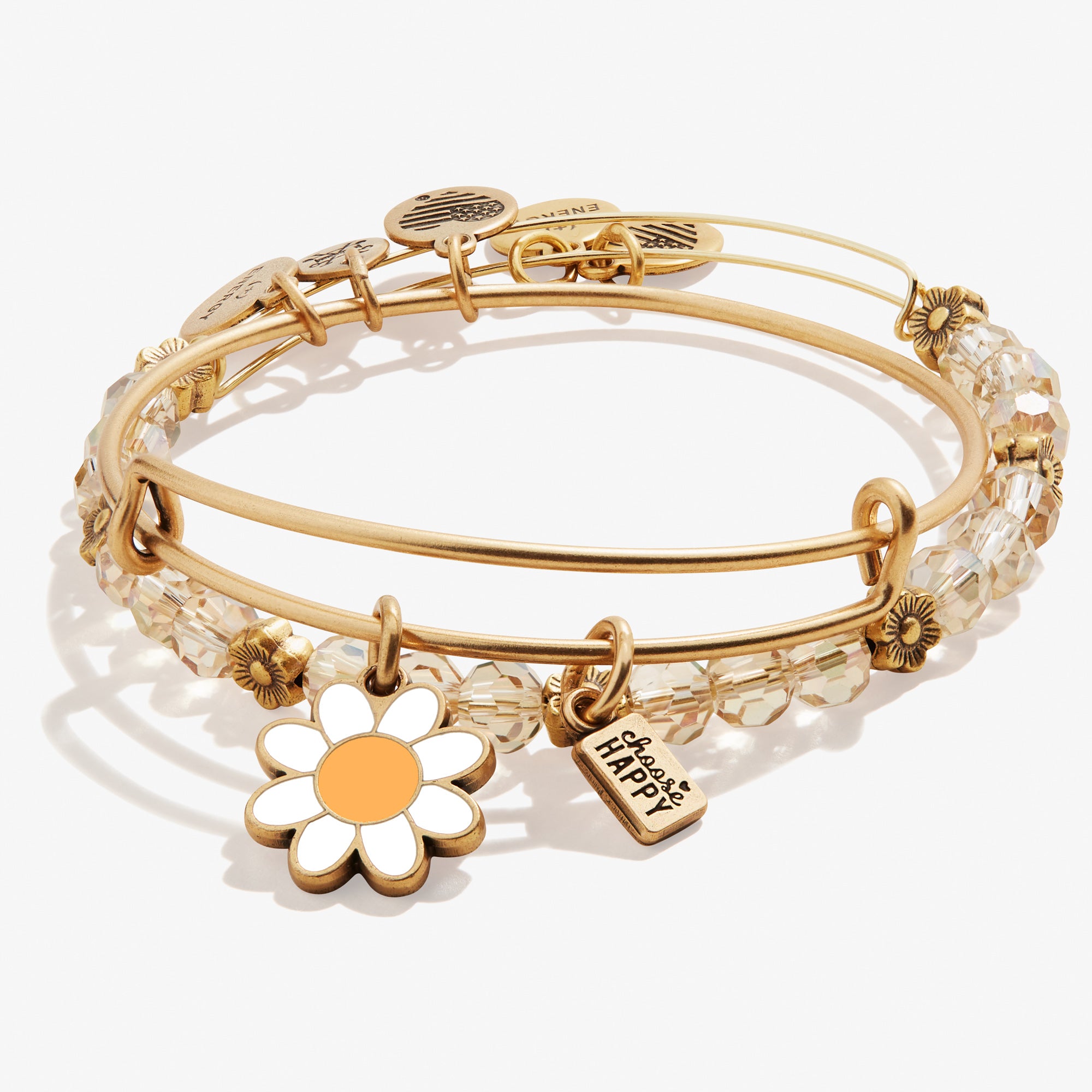 'Choose Happy' Daisy Charm Bangles, Set of 2