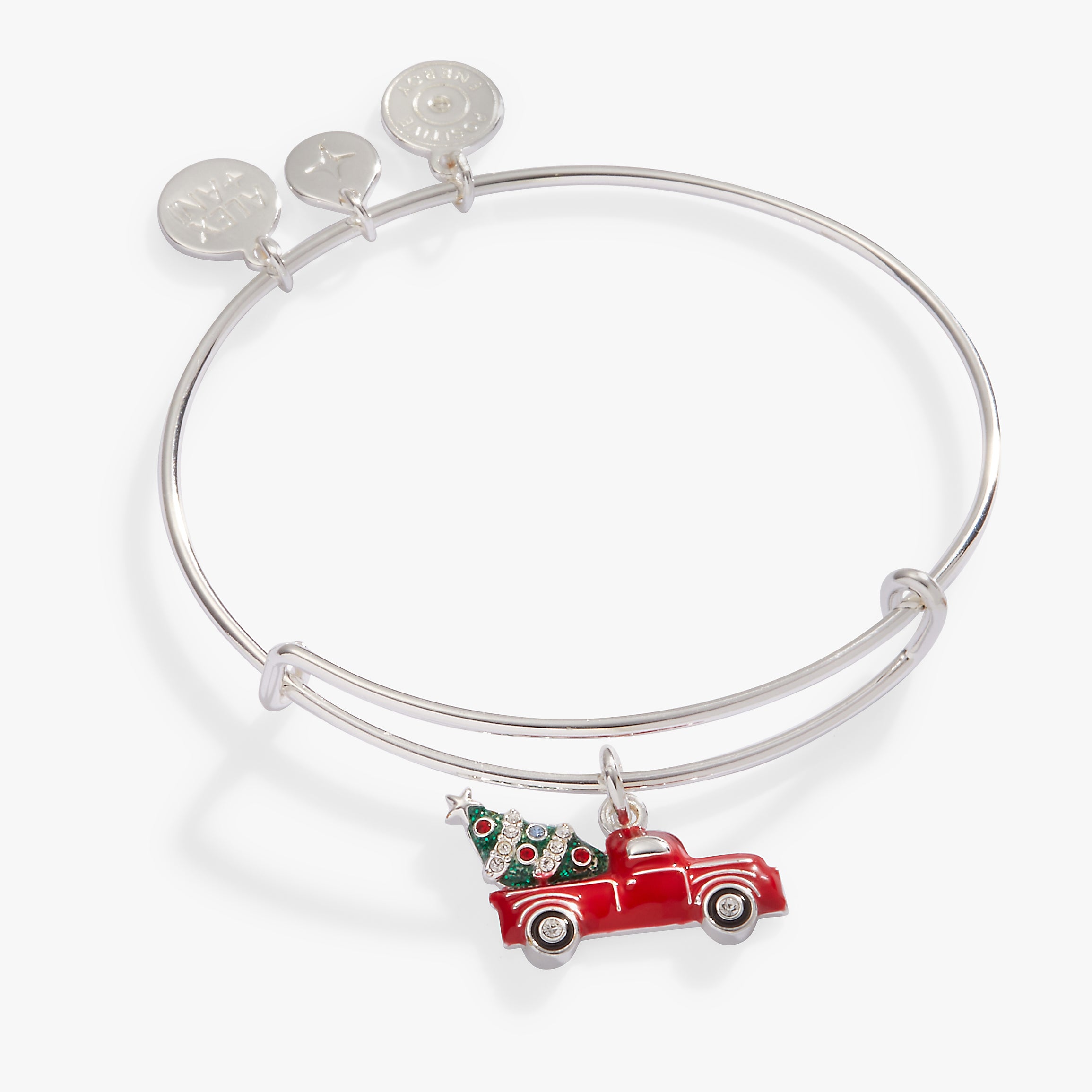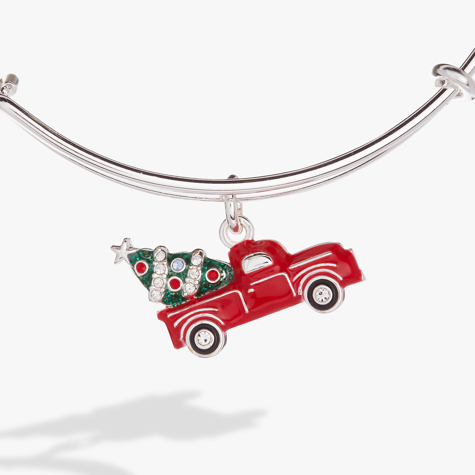It’s the holly-est, jolliest time of year! Channel the spirit of the season with this Holiday Truck Charm Bangle, which features a dimensional holiday truck and Christmas tree charm made with enamel, featuring glass crystal accents, on an expandable wire bangle bracelet.