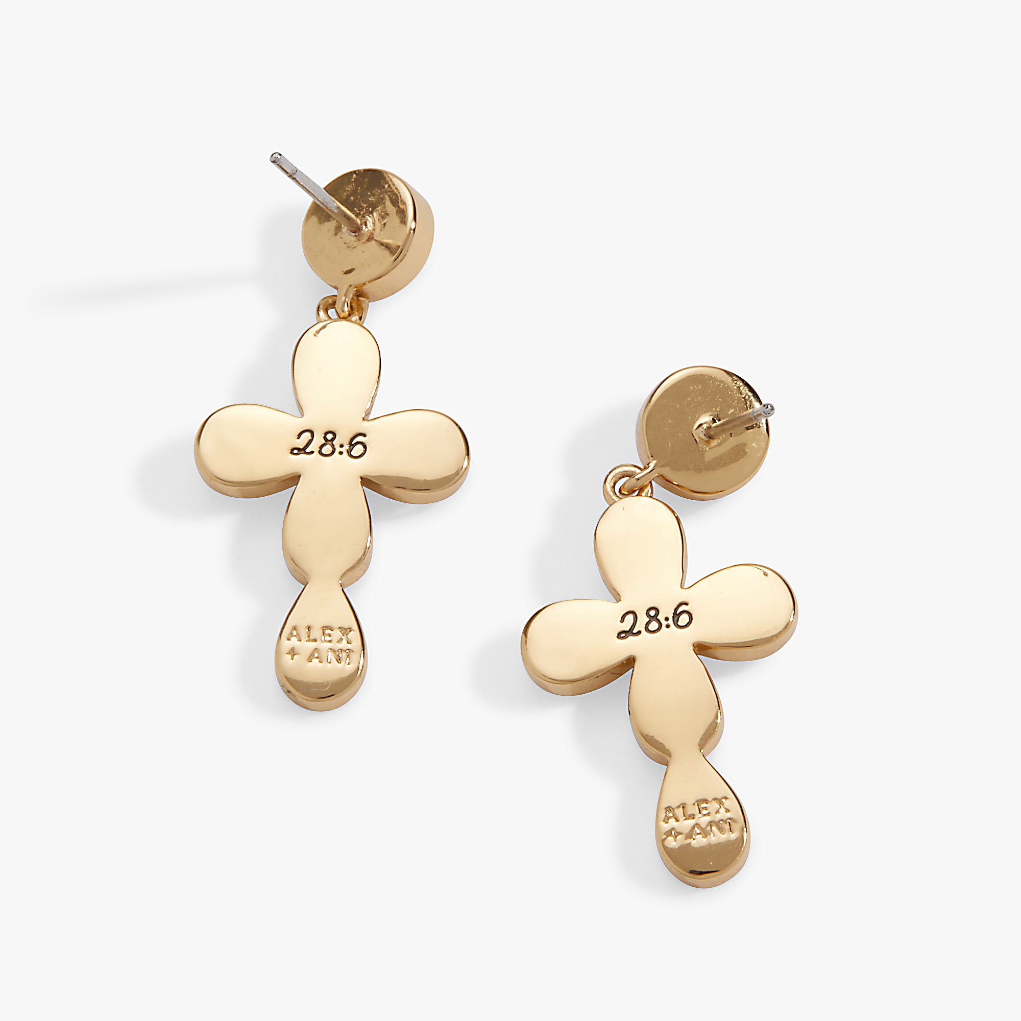 Elevate your look with these charming drop earrings featuring a lustrous pearl stud paired with a delicate pearlized enamel cross. The back is etched with the meaningful verse 28:6, adding a spiritual touch to your everyday style. Perfect for expressing your faith with a hint of feminine flair.