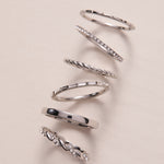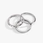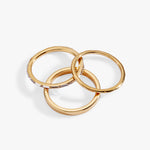 This fun set includes three stacking rings designed to add sparkle and style with ease. The first ring features a faceted baguette-textured band, the middle shows off a delicate band with clear baguette crystals, and the third is a smooth square metal band. Perfectly paired, this set makes stacking simple and trendy—no guesswork needed!.