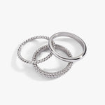 This set of three stacking rings makes layering a breeze. The first ring features a delicate ball-textured band, the next is a smooth rounded band, and the third is a domed ball-textured ring. Perfectly paired, this set takes the guesswork out of mixing and matching for a trendy, effortless look.