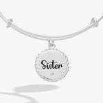 Celebrate the special bond you share with your sister with this charming bangle that's as meaningful as your connection. Featuring an engraved "Sister" charm, this expandable bangle showcases a beautiful rope edge texture that adds visual interest and dimension. Flip it over to discover the heartfelt message engraved on the back: "Woven together by unbreakable bonds"—a reminder that sisterhood is forever. Perfect for gifting to your sister, this versatile piece pairs beautifully with other bangles for a personalized stack. Whether you're celebrating a milestone, marking a special occasion, or simply wanting to honor your sisterly love, this bangle is a wearable token of your enduring connection.