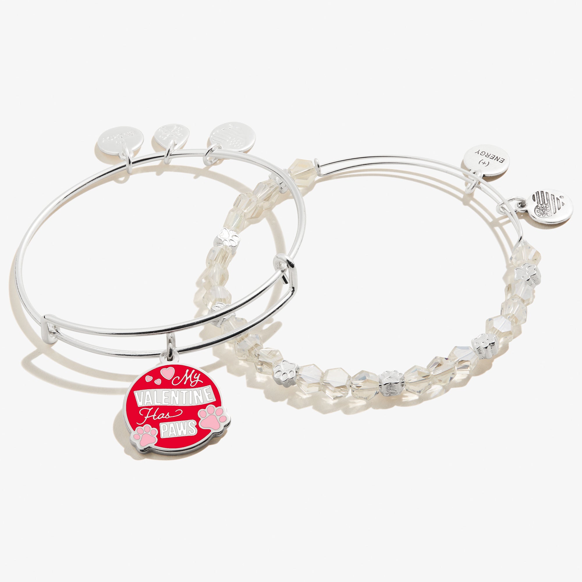 'My Valentine Has Paws' Charm Bangle Bracelet, Set of 2