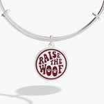 Dogs are our best friends, and so much more. This Raise the Woof Dog Bangle bracelet features an enamel charm that says "Raise the woof," and has paw prints, on an expandable wire bangle. Wear it to keep your favorite pets close, or gift it to your favorite dog lover.