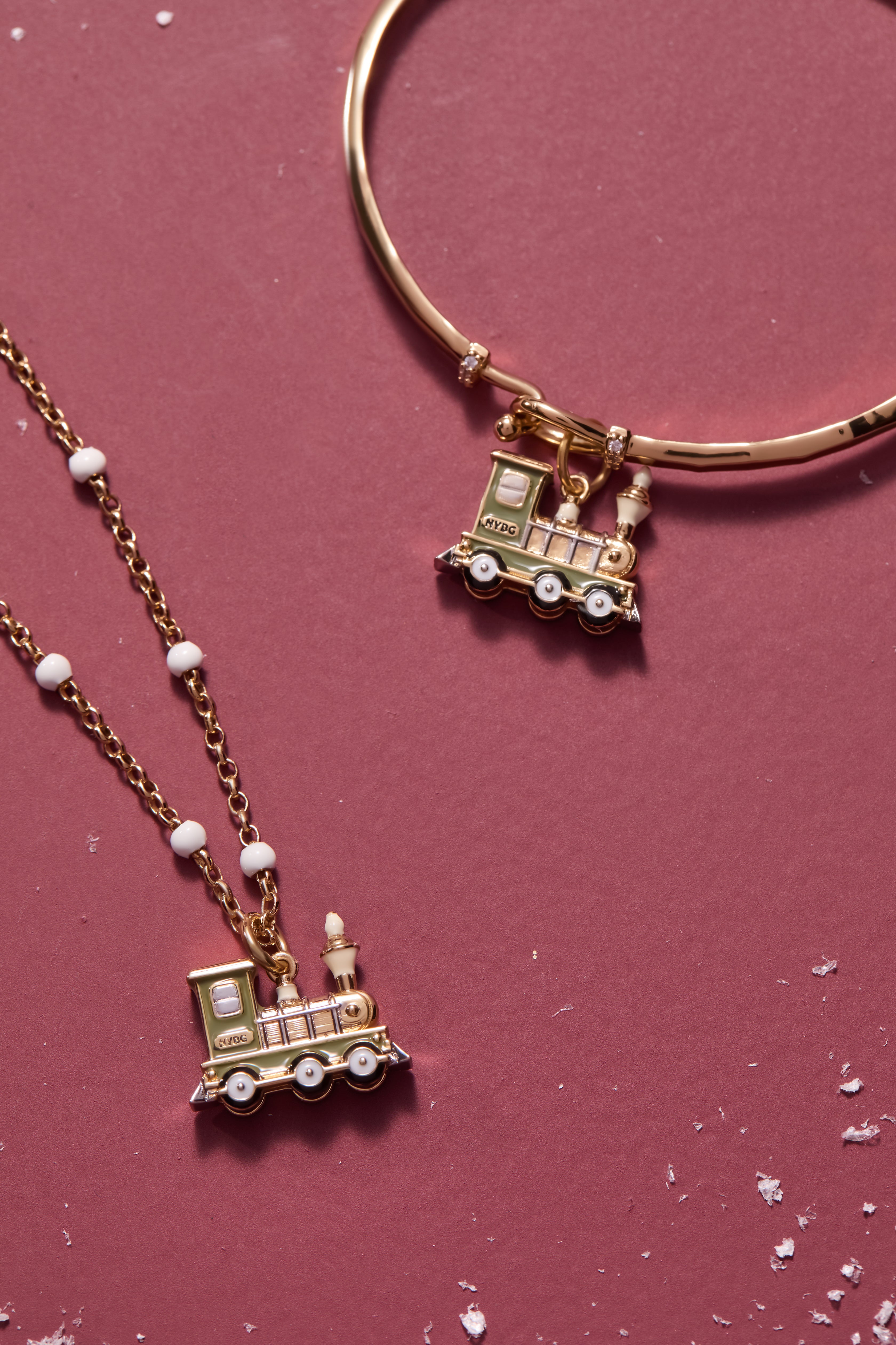 This whimsical train pendant brings a playful spirit to your collection with its dimensional design and charming details. Featuring soft green enamel accents, this exclusive New York Botanical Garden collaboration captures the joy of a garden adventure. The two-tone finish adds depth and character, while the pendant hangs gracefully from a classic white enamel dot chain. Perfect for collectors who love nature-inspired pieces with personality, this train charm celebrates the magic of exploration and growth.
