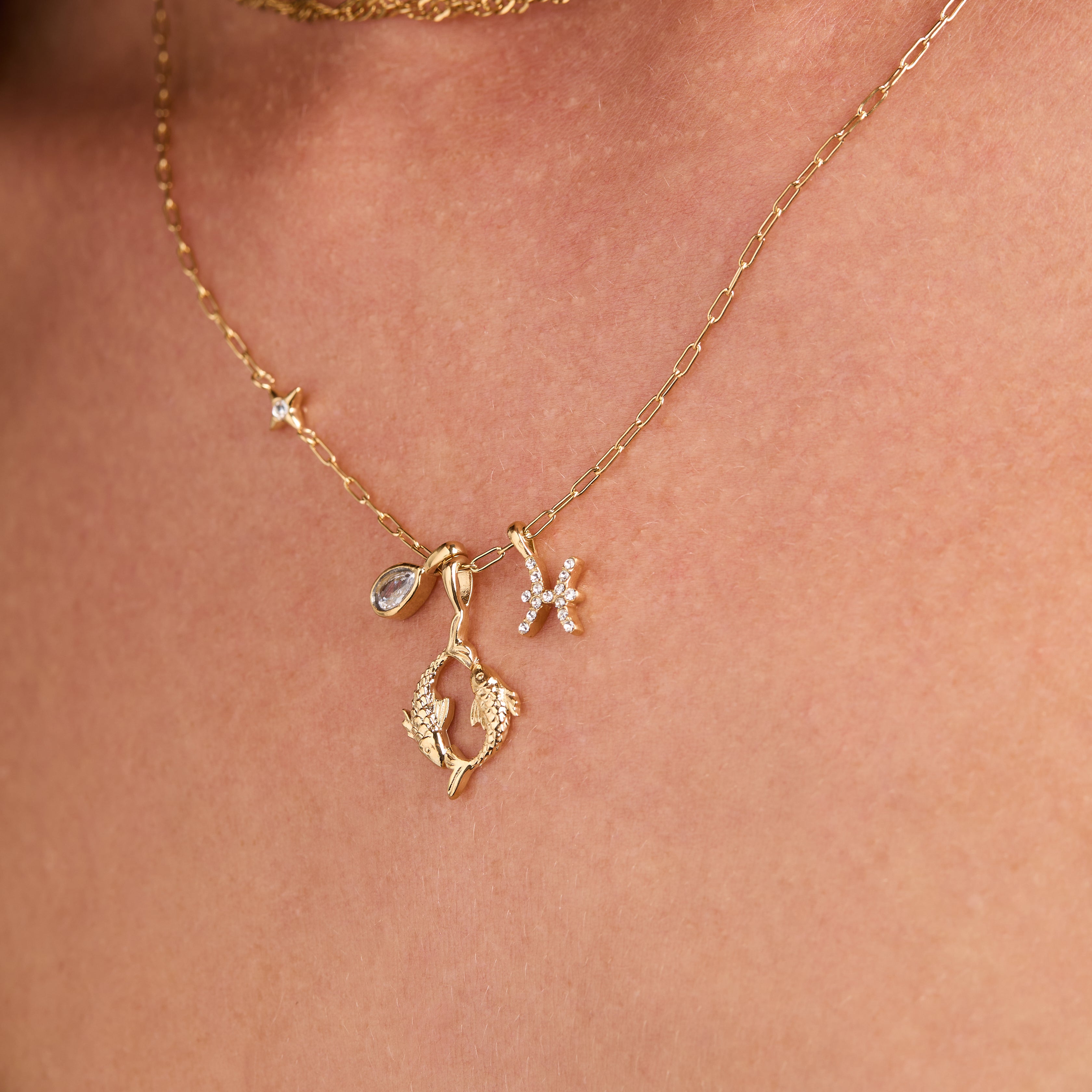 Pisces Zodiac Charm Cluster Necklace