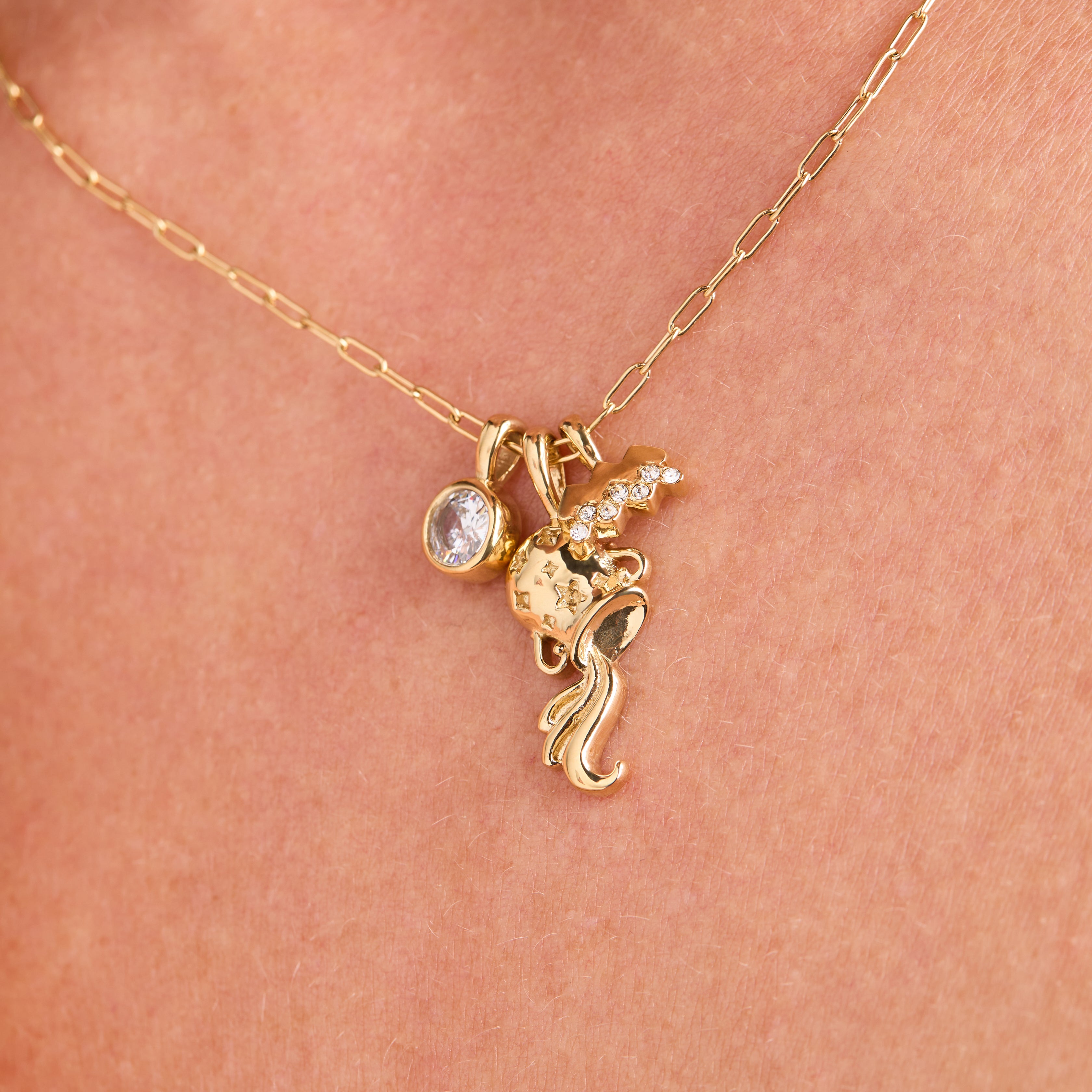 Aquarius Zodiac Charm Cluster Necklace