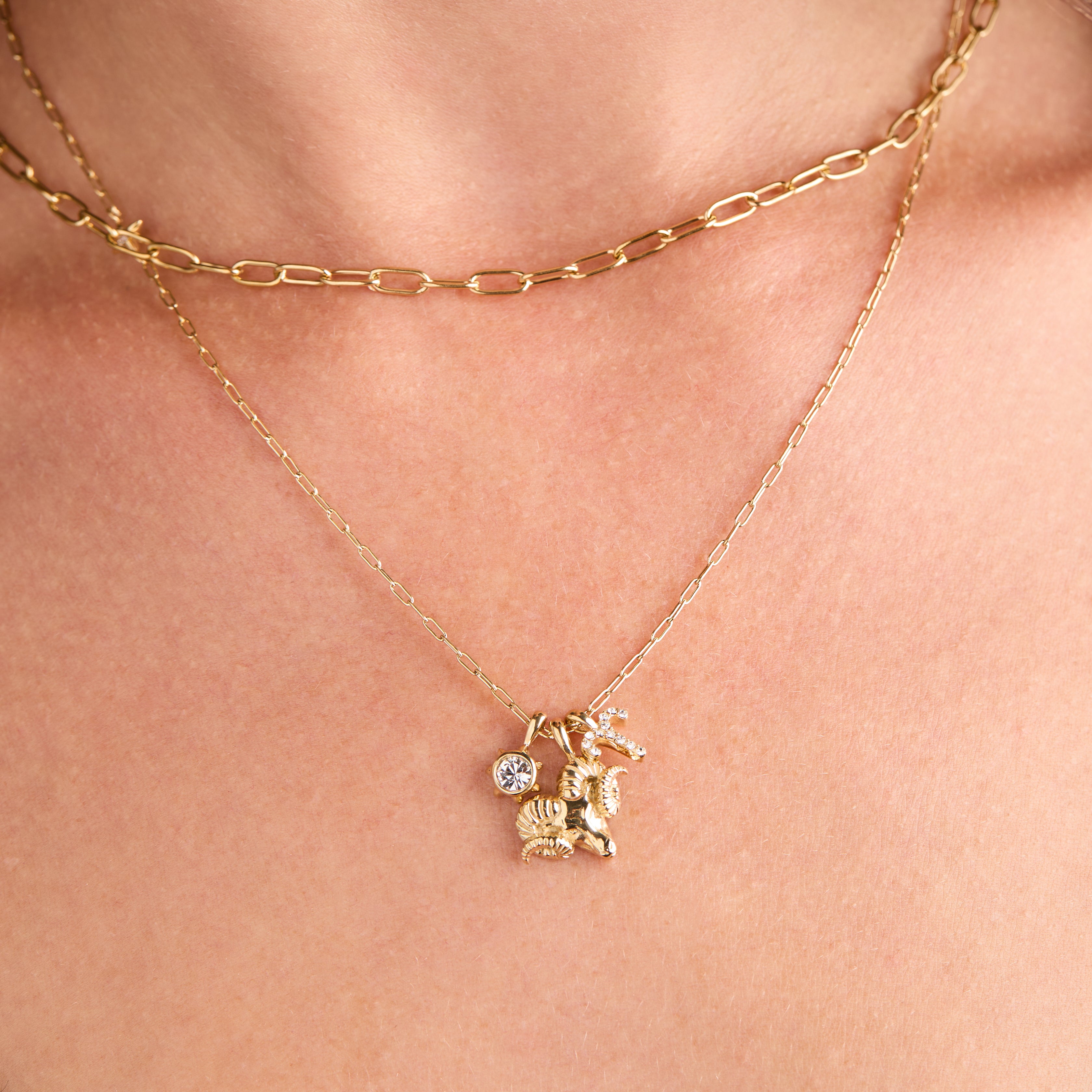 Aries Zodiac Charm Cluster Necklace