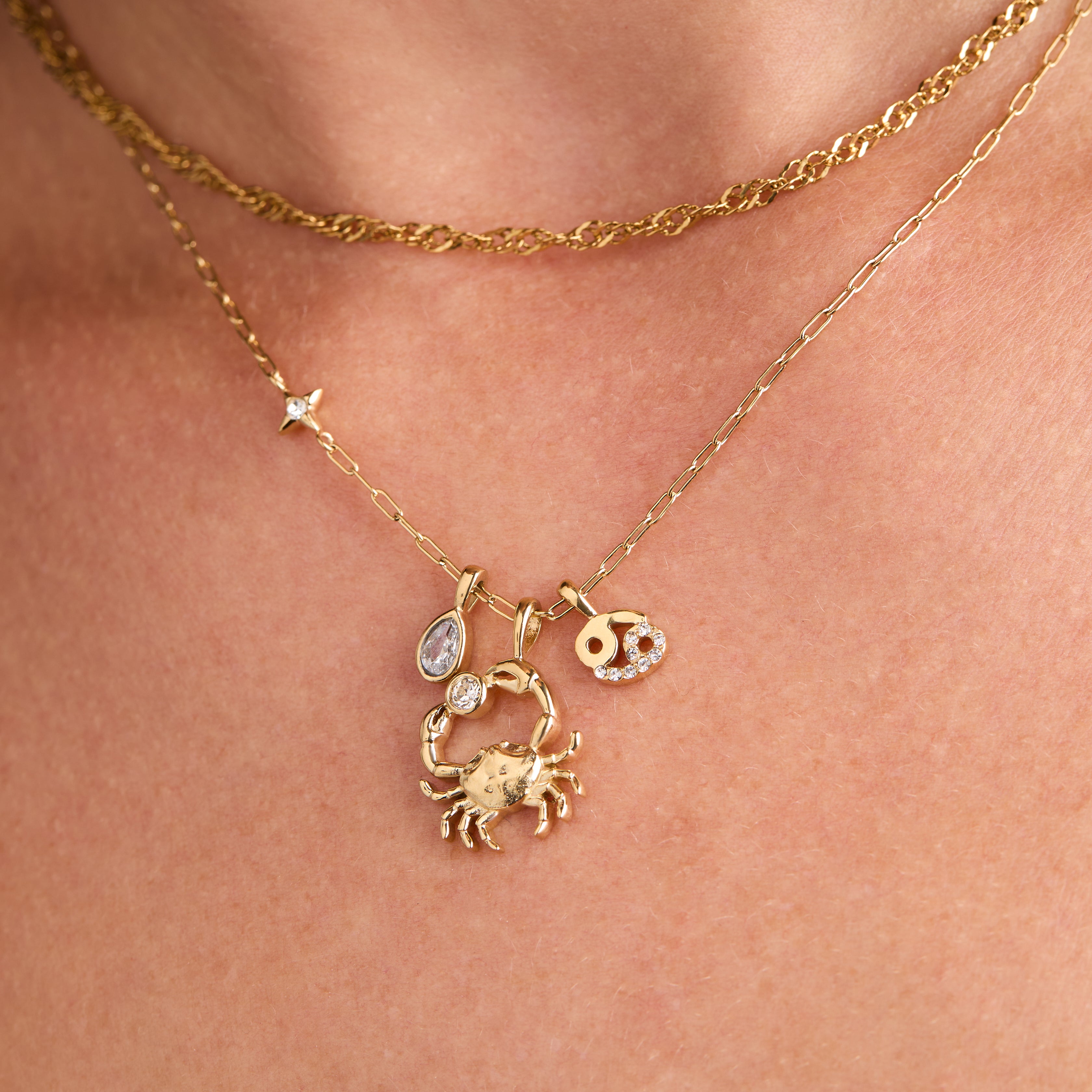 Cancer Zodiac Charm Cluster Necklace