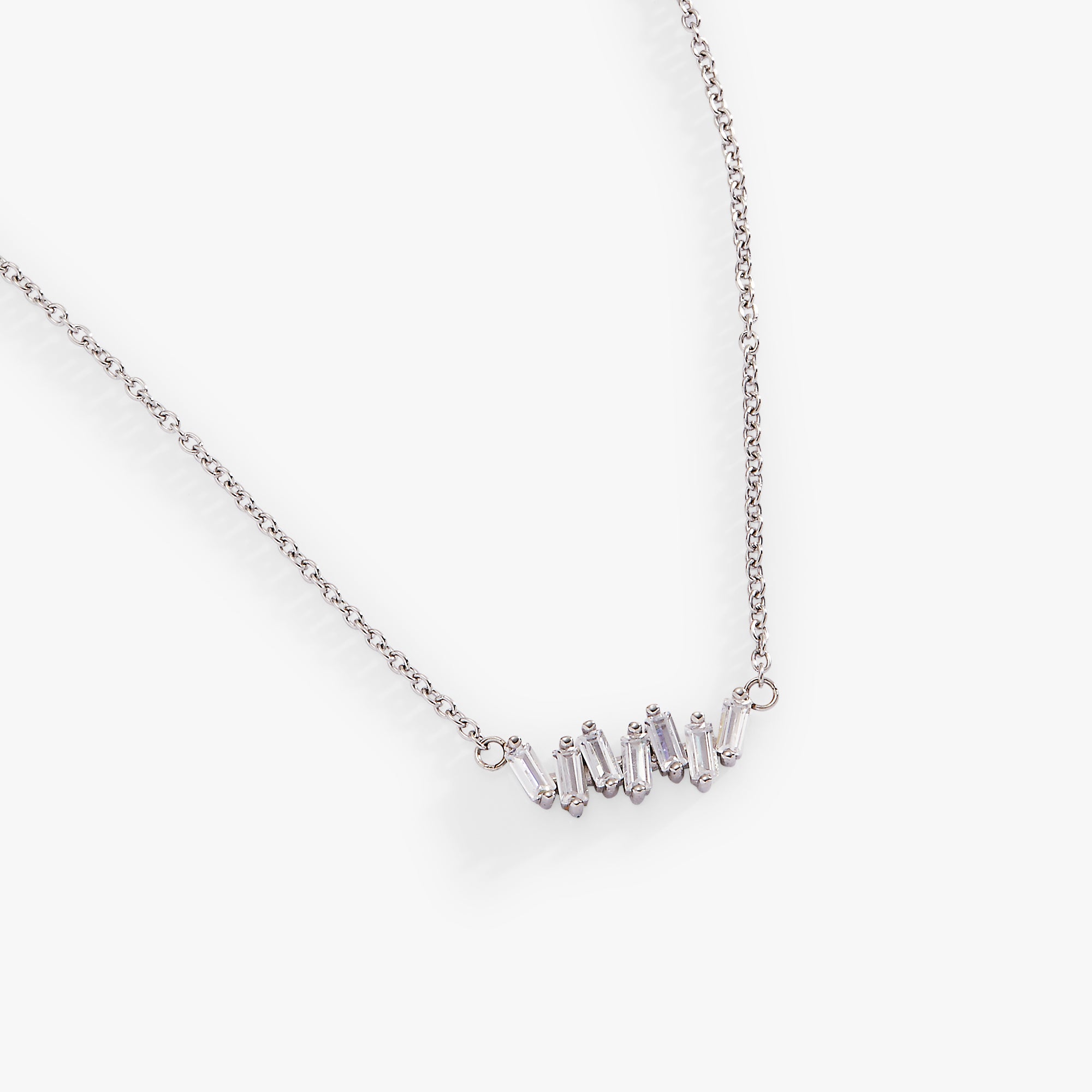 The best days are the days with a little bit of sparkle to them. Enhance your natural shine with this necklace, which features gleaming baguette-cut crystals in a unique inline design set into an adjustable-length chain. Dress it up or down — it’s a beautiful addition to any look. Because it’s silver-tone stainless steel, it’s durable and scratch-resistant so you can wear it on repeat.