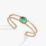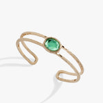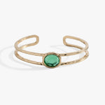 Show off your stack style with the Crystal Hammered Cuff Bracelet, featuring a silver or gold double-layer cuff bangle with textured detail throughout and a green faceted glass crystal at the center.