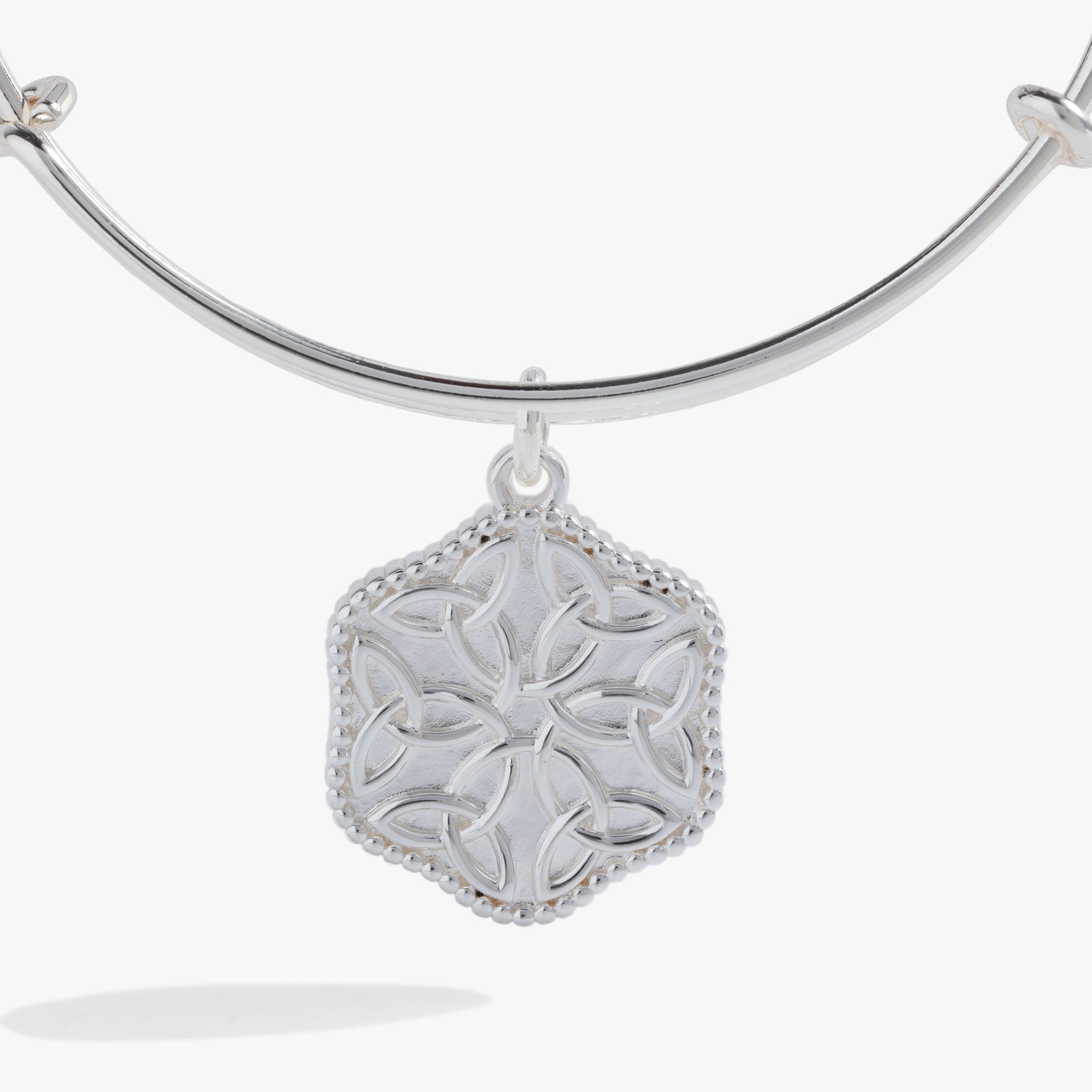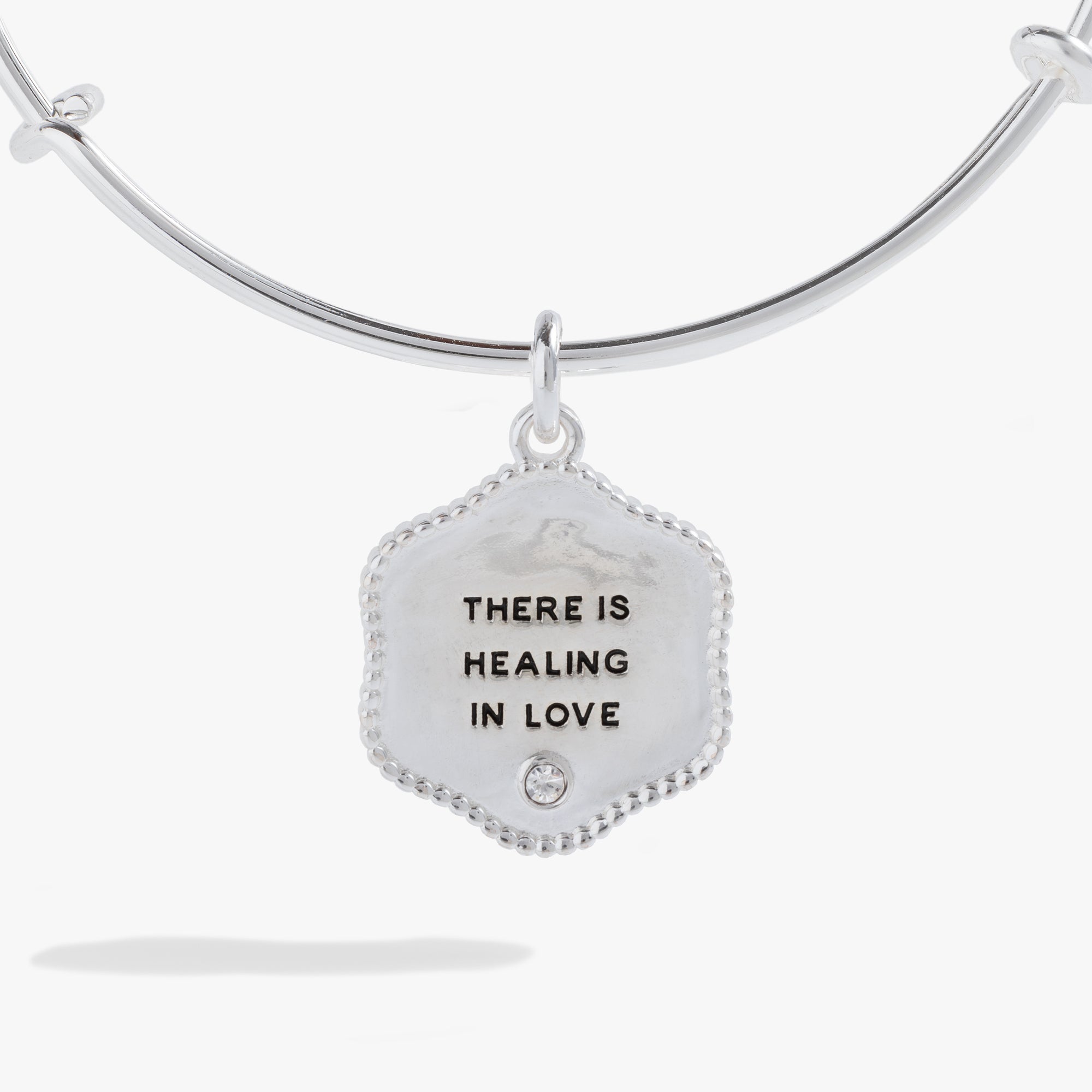 Stack on a reminder to keep your heart open to the love that finds you. The Healing Love Bangle Bracelet features a knot design on the front and a crystal detail inscription on the back that reads, "There is healing in love."