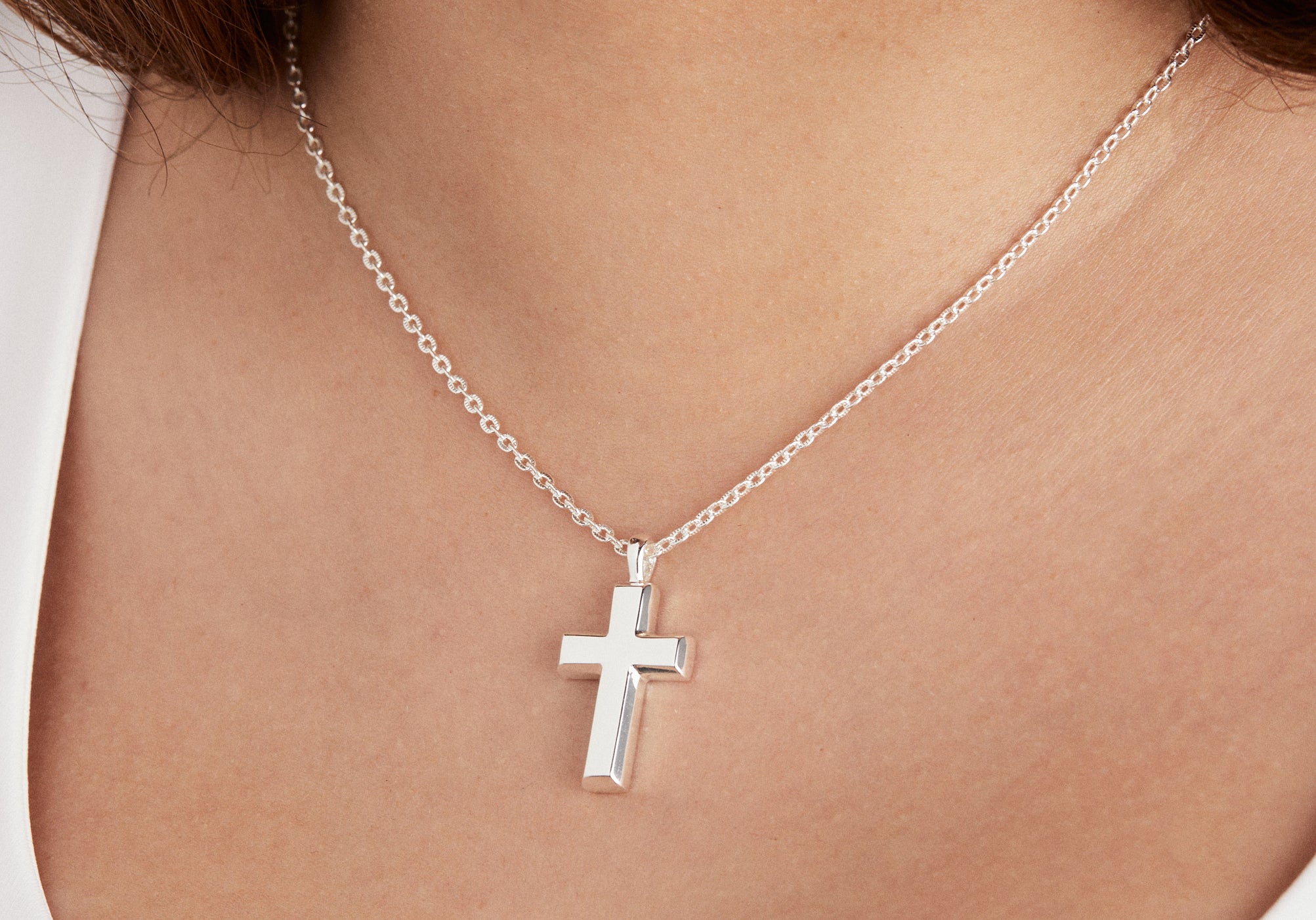 Cross 4:13 Pearl Rosary Chain Pendant Necklace