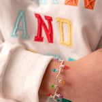 Sparkle and shine this holiday season with our best-selling Christmas Light Bulb Cuff. This festive bracelet features red, green, purple, blue, and yellow light bulbs accented with clear crystals, on an artfully twisted open cuff. Back and better than ever, it’s been re-designed to last so you can glow bright all season long without a worry.