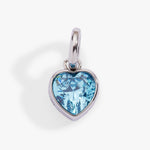 This charm features a sparkling aquamarine-colored cz stone, faceted into a heart and nestled in a bezel setting, with a star-shaped logo cutout on the back. "Faith," linked to the March birth month, is etched along the side. It’s a fun, colorful way to add a personal touch and meaningful sparkle to your bracelet or necklace stack.