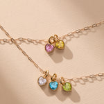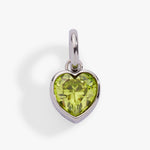 This charm features a sparkling faceted heart-shaped peridot-colored cubic zirconia, perfect for August birthdays, nestled in a sleek bezel setting. The back showcases our signature star cutout logo, while "Radiance" is delicately etched on the side. It's a fun and meaningful way to add a colorful, personalized touch to your bracelet or necklace stack.