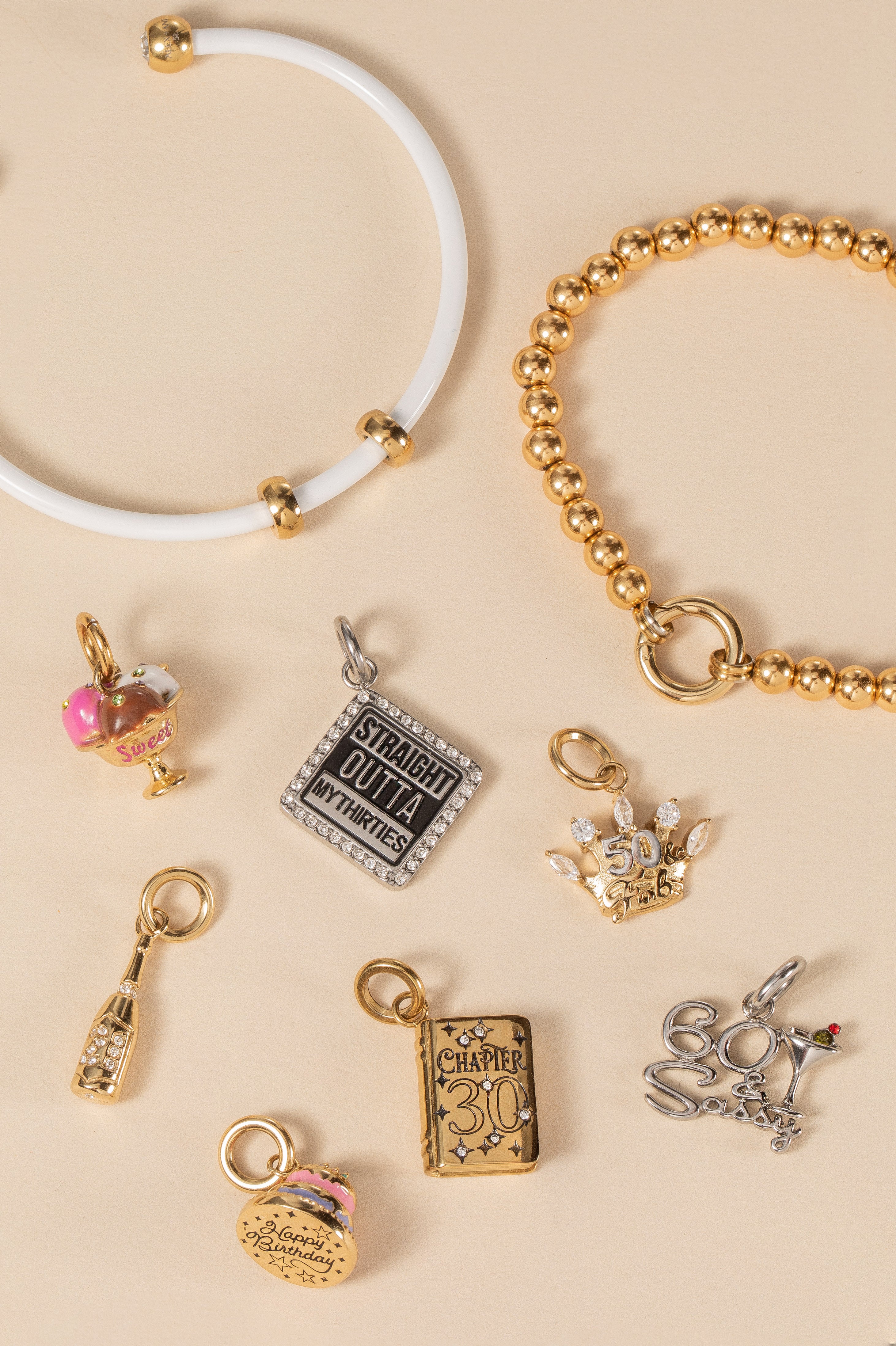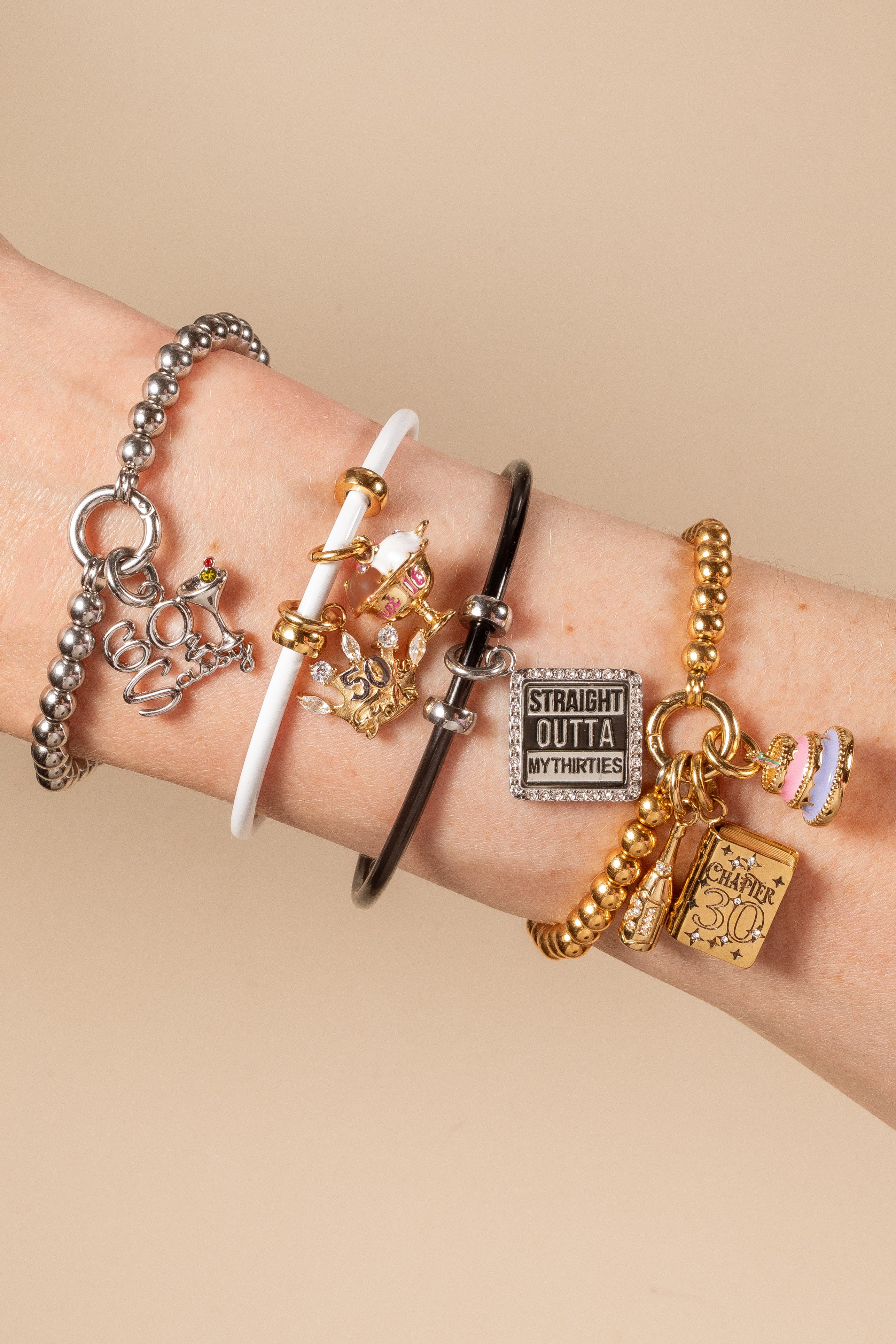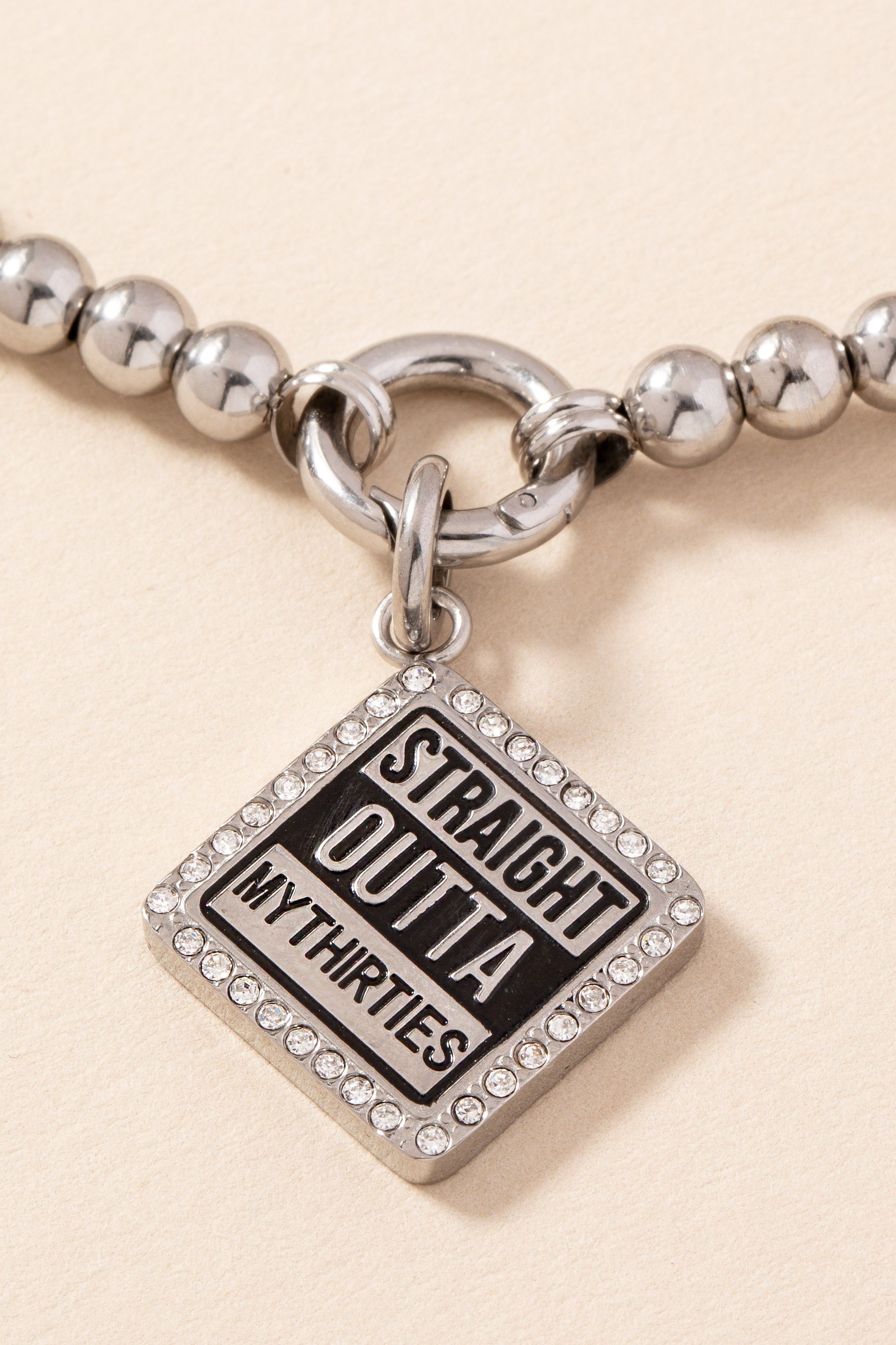 Step into your next era with attitude. This square charm makes a bold statement with “STRAIGHT OUTTA MY THIRTIES” front and center, styled in shiny silver stainless steel and accented with glossy black enamel. With a sleek, graphic look and interchangeable design, it’s the perfect charm to mark a milestone with sass, sparkle, and a whole lot of main character energy.