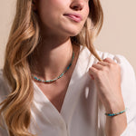 Celebrate color and creativity with this vibrant beaded necklace, featuring small faceted rondelle semiprecious stones in aqua and turquoise tones arranged in a playful ombré pattern. Designed with versatility in mind, the lightweight strand includes a stainless steel extender chain allowing you to easily thread on our interchangeable charms for a personalized touch. Each bead is naturally unique, adding character to every piece. Whether worn solo, stacked, or styled with charms, it’s the perfect way to add a fresh, coastal-inspired pop to your look.