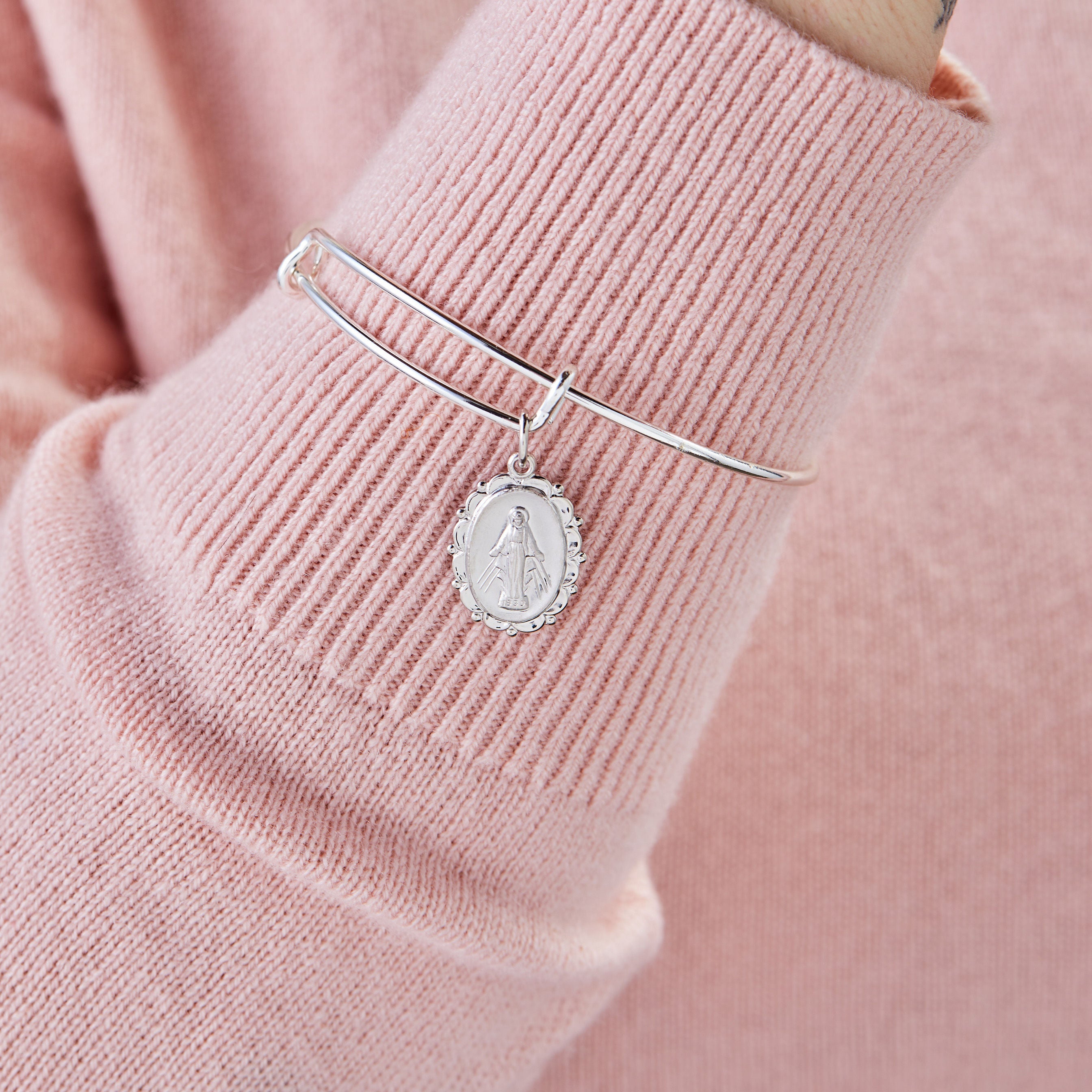 Mother Mary Charm Bangle Bracelet