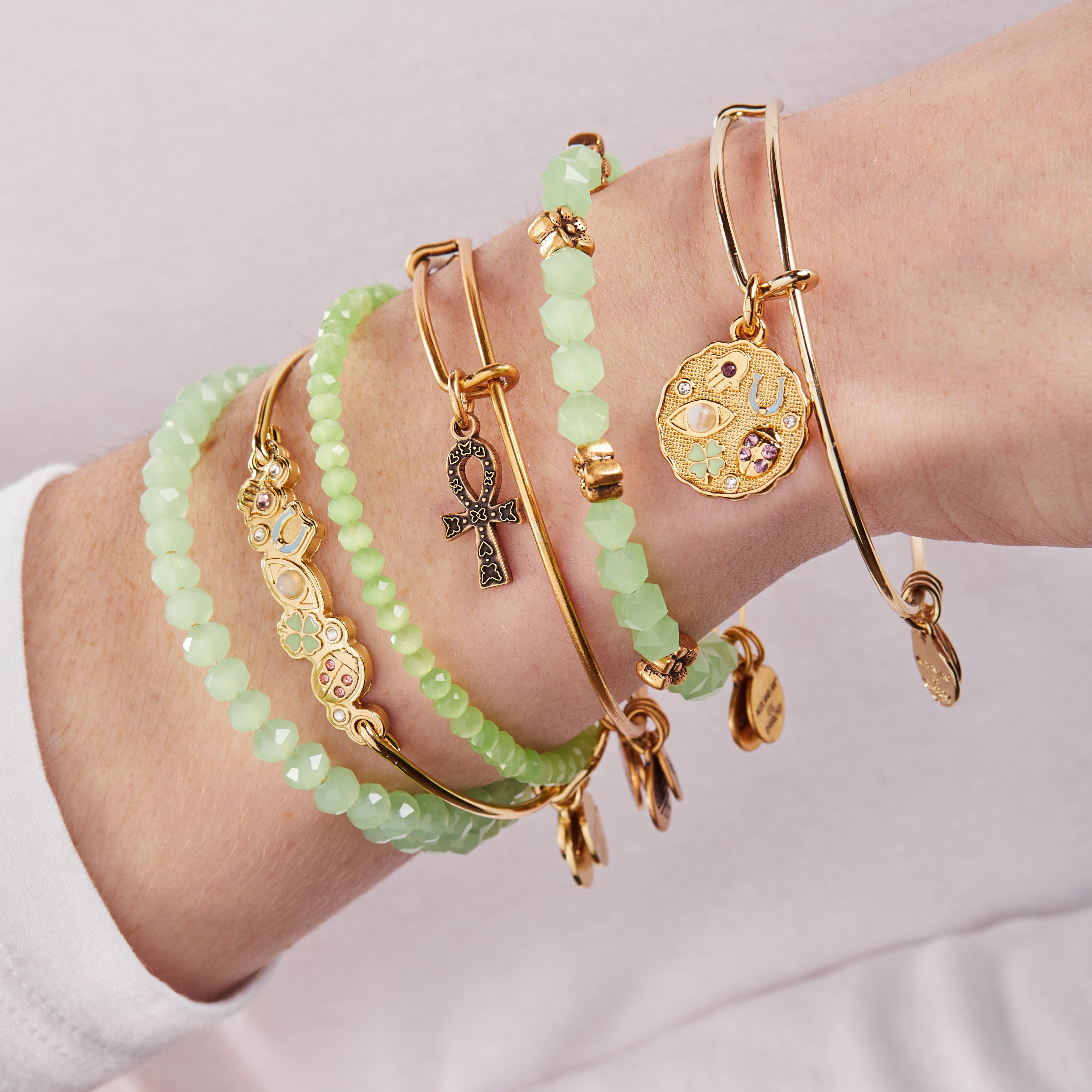 Our jewelry was created with the utmost love and care. Follow these guidelines to help keep your jewelry looking its best year after year. Use the ALEX + ANI polishing cloth to effectively clean your jewelry – great to use on Trend metals, Stainless Steel, and Precious metals. If your jewelry requires further cleaning, use mild soap, water and a soft cloth. Rinse with clean water and pat dry. Use the soft toothbrush to clean crystals if necessary. Make sure your jewelry is completely dry before storing.