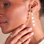 A strand of cool, effortless elegance. These linear drop earrings string together organic-shaped freshwater pearls with gleaming gold-tone accents, giving you that “didn’t even try” kind of chic. Built in stainless steel for all-day (and night) wear—scratch, water, and tarnish resistant.