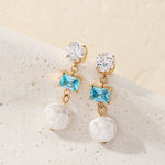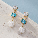 Easy elegance, with a twist. These drop earrings feature organic-shaped pearls, radiant aquamarine blue crystals, and clear crystal bases for a polished yet playful look. Durable stainless steel construction means they’re ready for everyday wear—water, scratch, and tarnish resistant to keep the glow going strong.