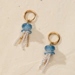 Bring a splash of seaside magic to your style with the Whimsical Jellyfish Huggie Earrings. Featuring a carved turquoise-look resin top and playful cascading fringe, these earrings capture the beauty and movement of ocean life. Shimmering gold chain and crystal tennis chain details create a sparkling effect that sways with every step. Finished in shiny gold or silver tones, this matching pair is perfect for adding a little whimsy—and a lot of sparkle—to your summer stack.