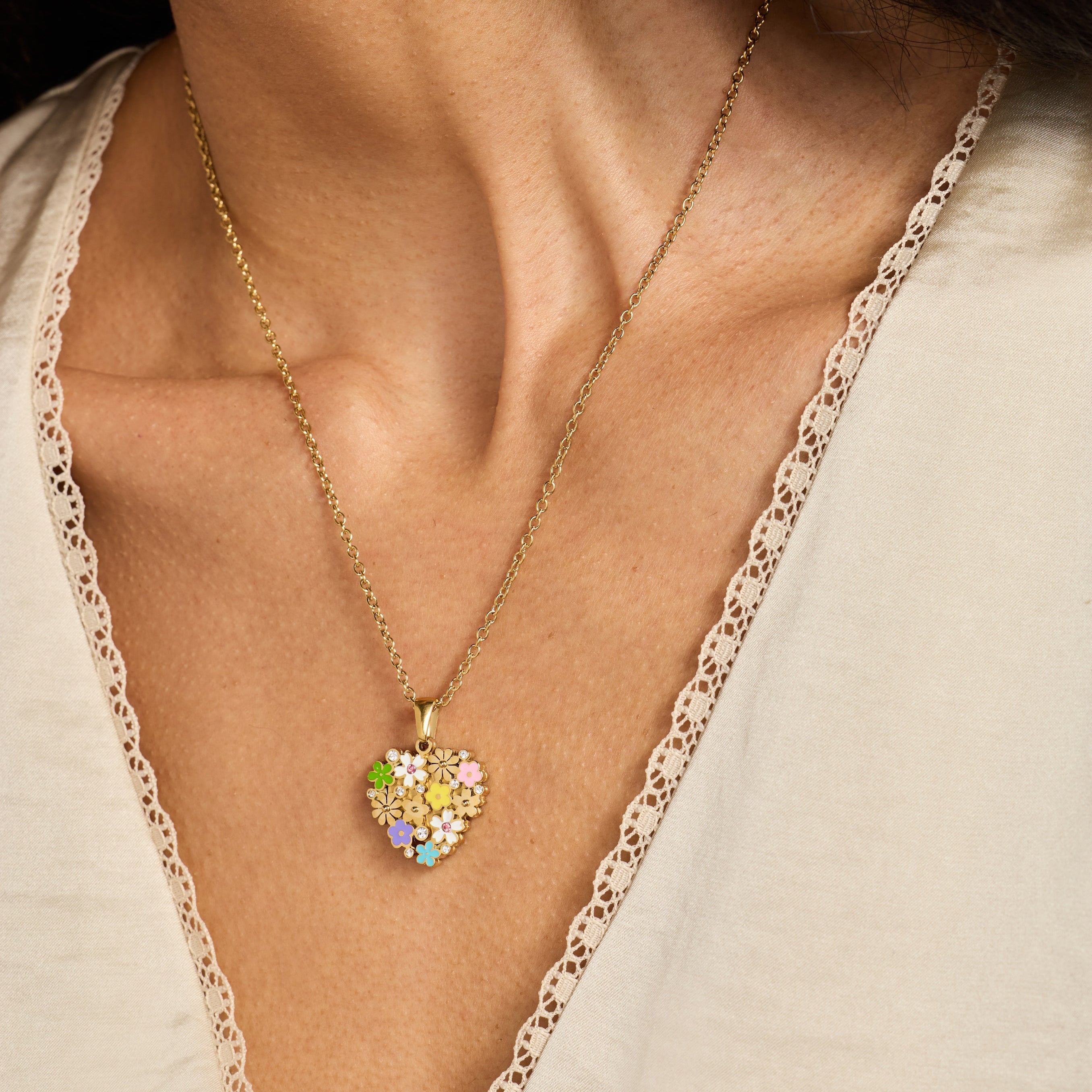 Blossoming Flowers Enamel Locket Pendant Necklace