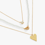 She’s the greatest blessing of your life, a constant inspiration and source of joy. This Daughter Layered Necklace features three necklace strands, joined by one clasp. The shortest is a square-cut glass crystal stone on a chain, the next is an iridescent glass crystal stone strand joined by two glass crystal-embellished linked circles, and the longest is a chain necklace with a heart charm that says “daughter” and “blessing” on it. Gift it to the one who fills your heart with love.