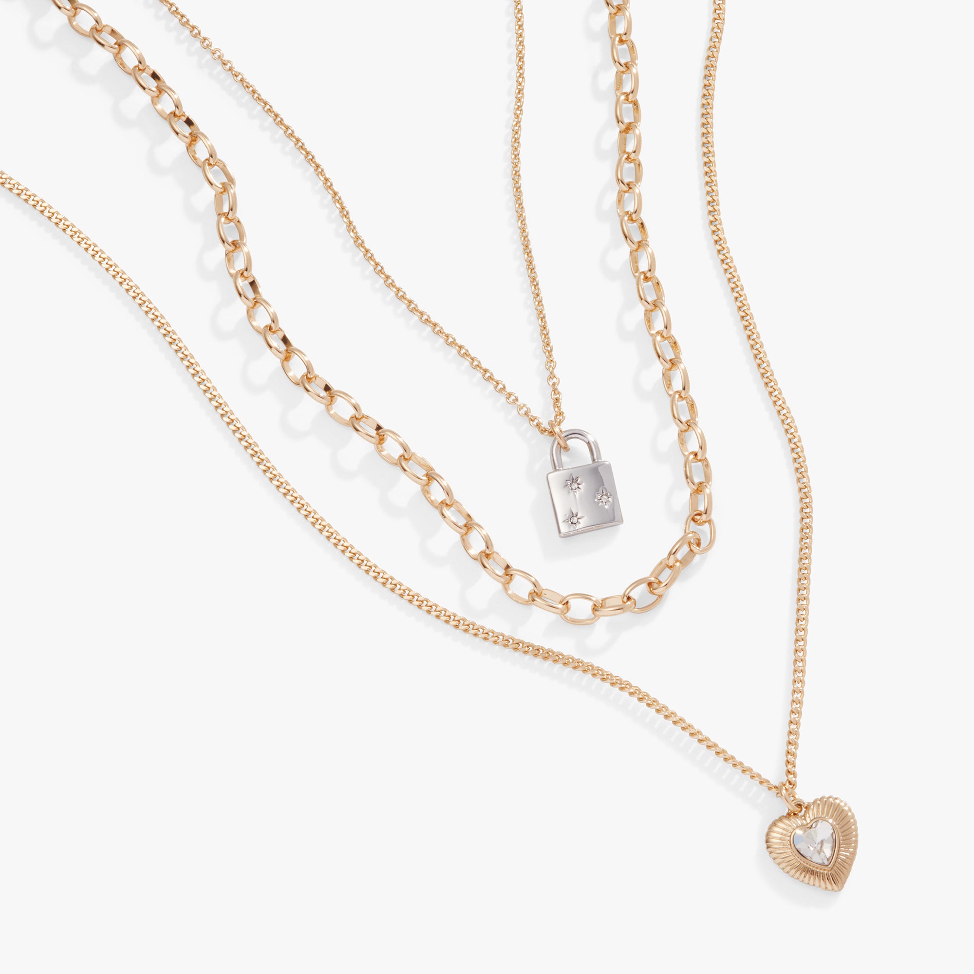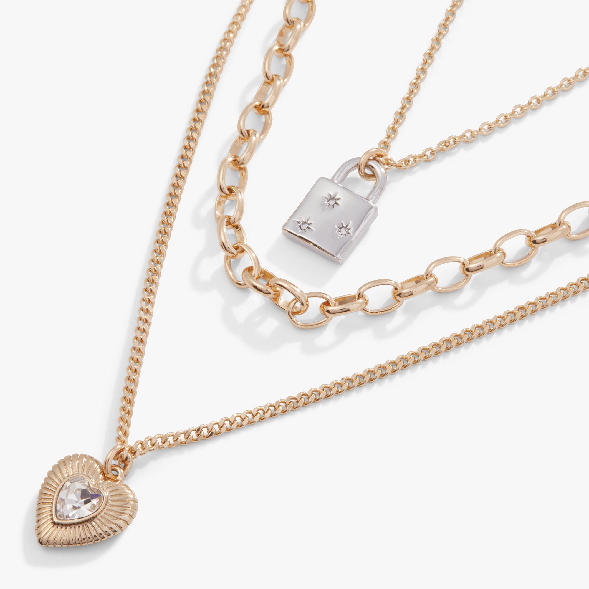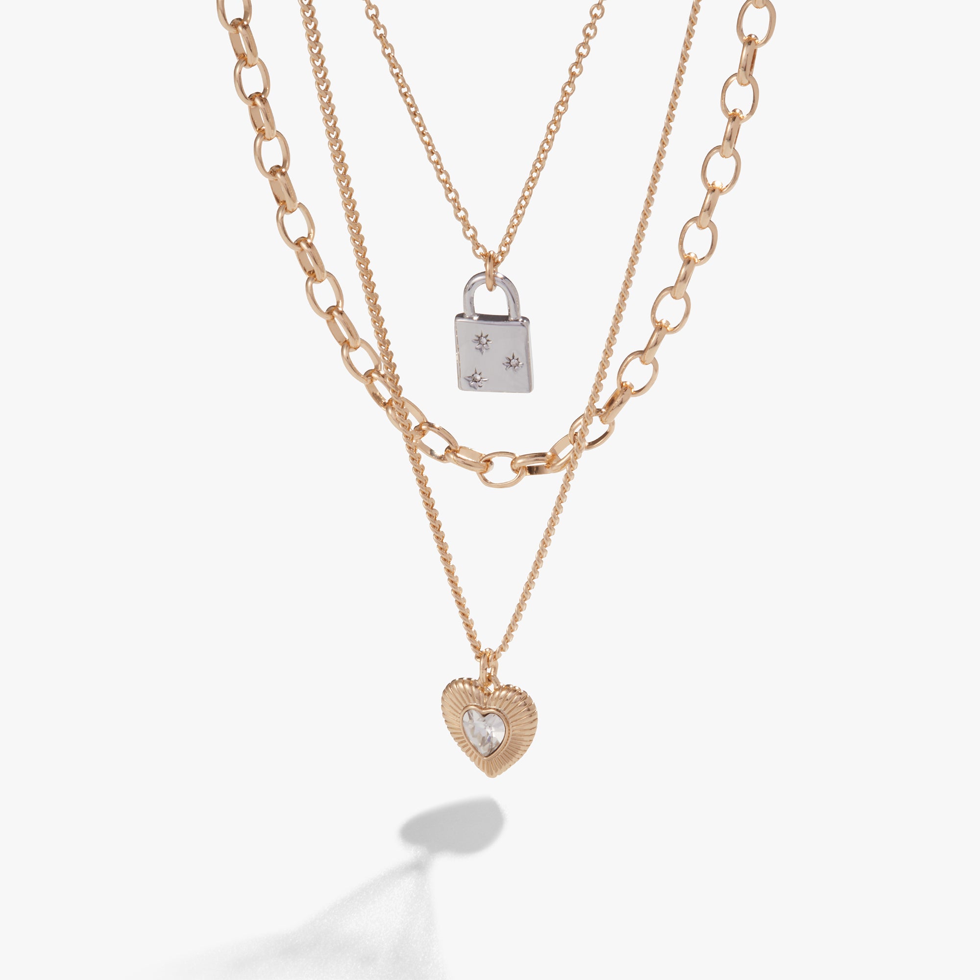 Multi-Chain Heart + Lock Necklace