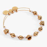 Sparkle and shine this holiday season with this holiday bells bangle. This festive bracelet has engraved bell and ornament charms interspersed with pearl crystal beads on an expandable wire bangle. Wear it for a touch of cheer all season long.