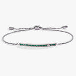 This adjustable bolo bracelet offers a comfortable fit that easily adapts to your wrist, sparkling brightly with a vibrant emerald colored birthstone for May. Perfect for stacking or wearing on its own, this bracelet combines fun and style effortlessly, bringing a joyful pop of color to any outfit.