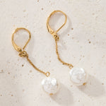 Delicate with just enough edge. These lever back earrings feature a gold twist chain and organic pearl drop that brings movement and shine with every turn. Made with stainless steel to resist water, scratches, and tarnish, so they’re always ready when you are.