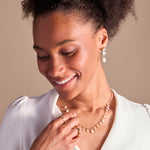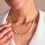 Pearls that move like you do. This 16" adjustable necklace features a row of organic-shaped freshwater pearls that shift and shimmer with every step. Stainless steel keeps it strong, shiny, and ready for anything—whether you're layering it or letting it speak solo.